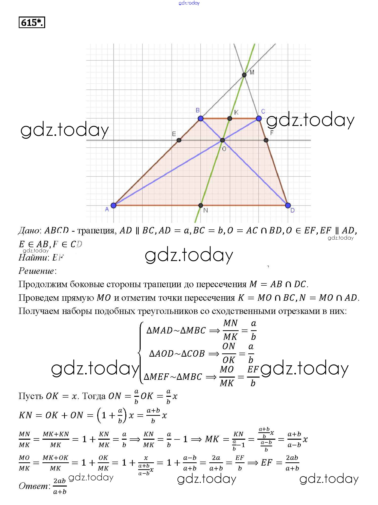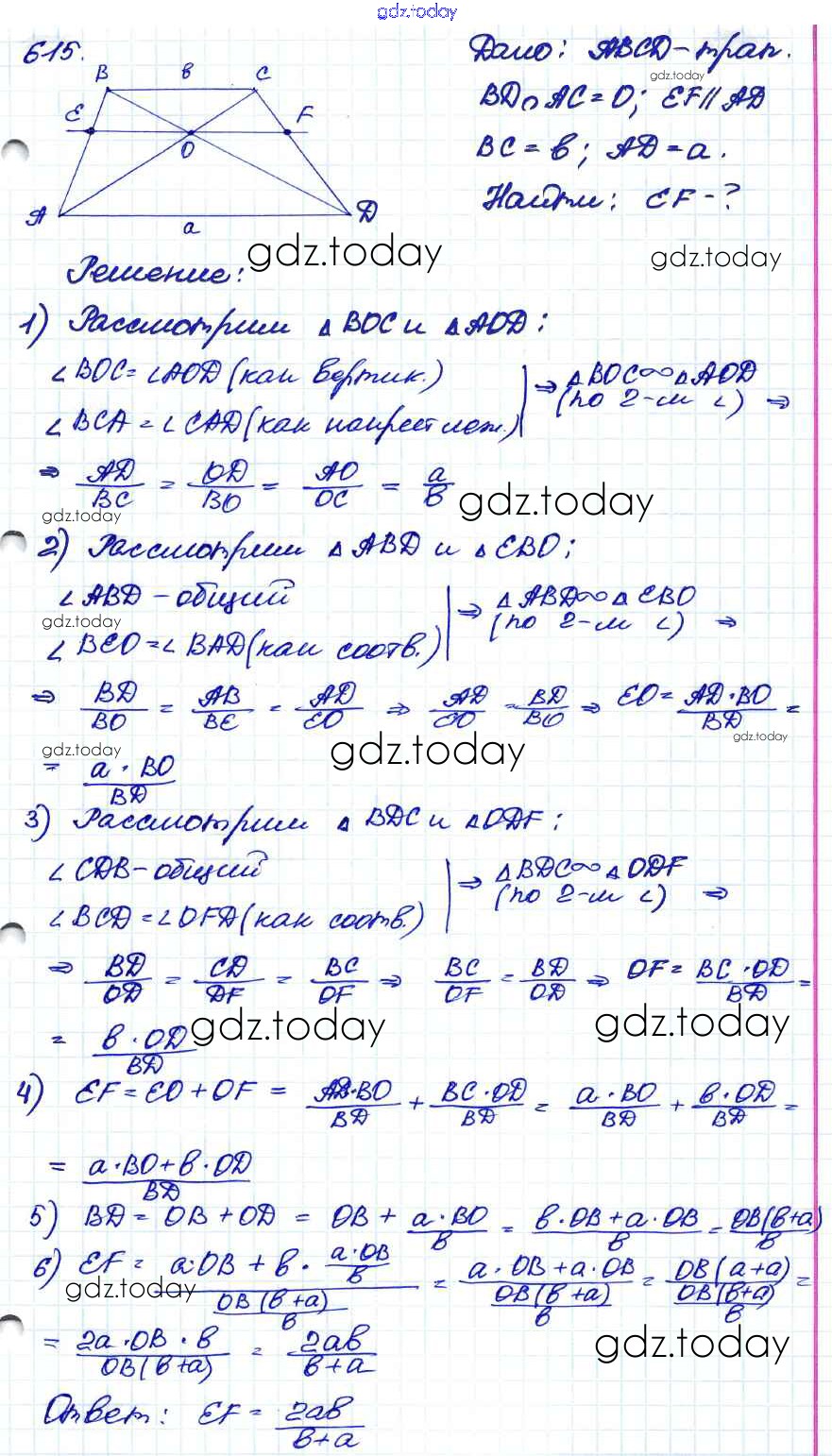 Ответы к Решение. Задачи 615 Учебнику по Геометрии для 7-9 класса Атанасян, Бутузов Просвещение 2010