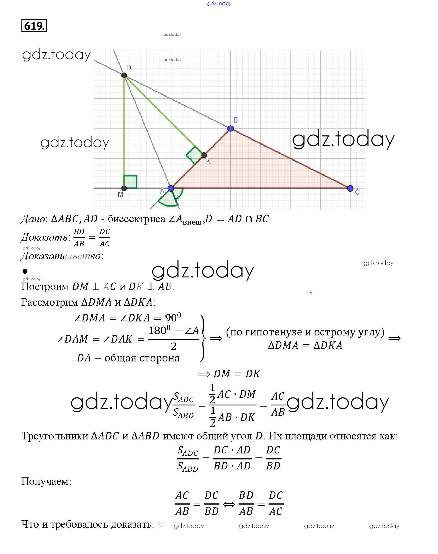 На страницах сайта gdz.today вы найдете учебный и вспомогательный материал, направленный на улучшения знаний школьной программы. ГДЗ - онлайн мир знаний Решение. Задачи 619 Учебнику по Геометрии для 7-9 класса Атанасян, Бутузов Просвещение 2010