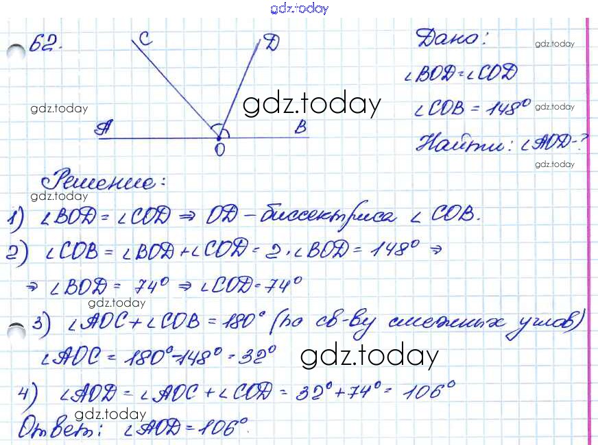 Ответы к Решение. Задачи 62 Учебнику по Геометрии для 7-9 класса Атанасян, Бутузов Просвещение 2010