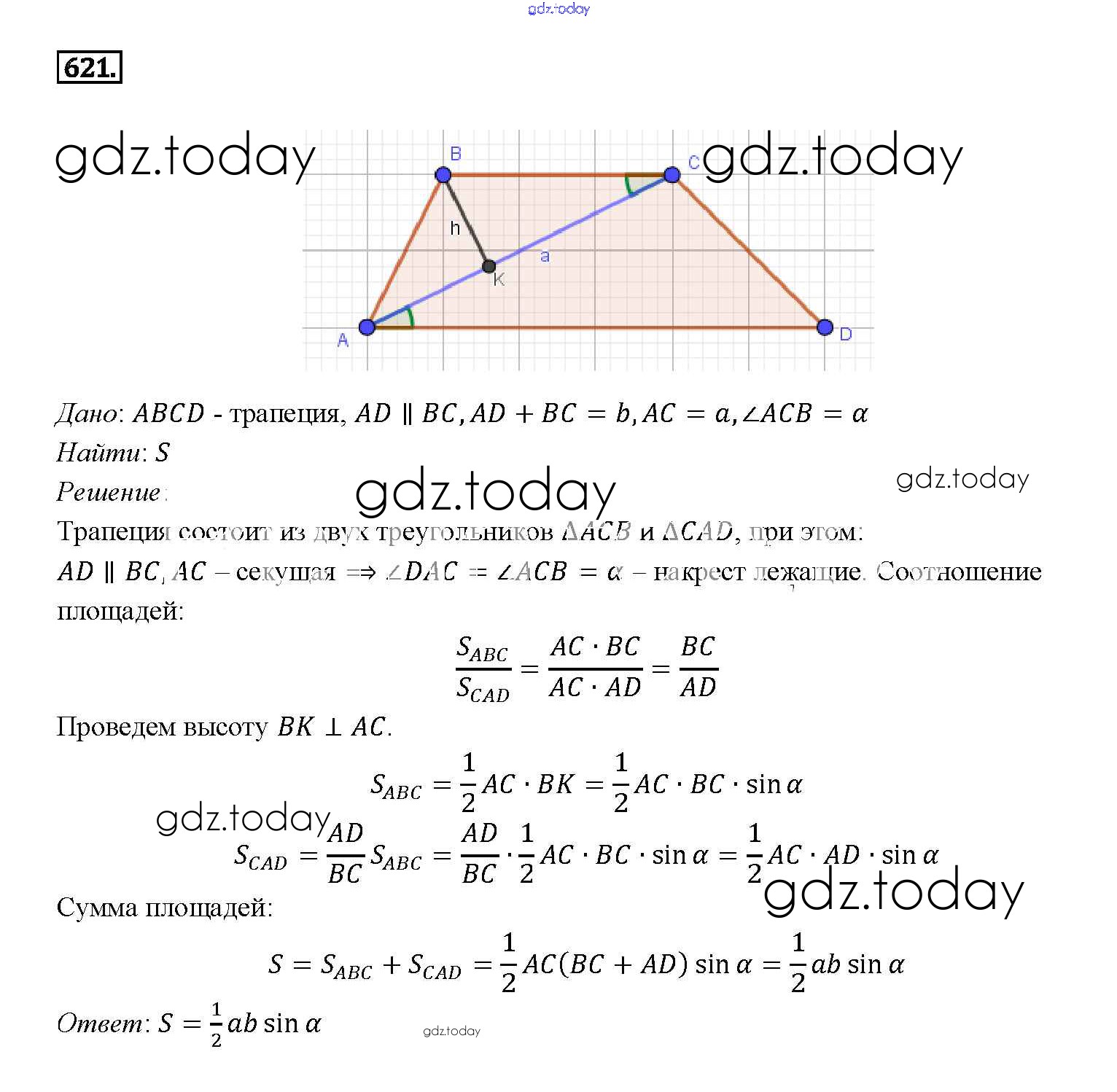 Ответы к Решение. Задачи 621 Учебнику по Геометрии для 7-9 класса Атанасян, Бутузов Просвещение 2010