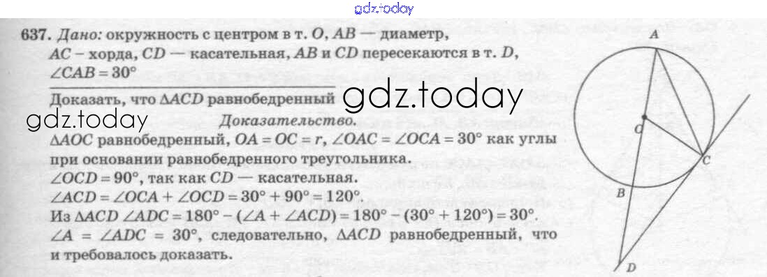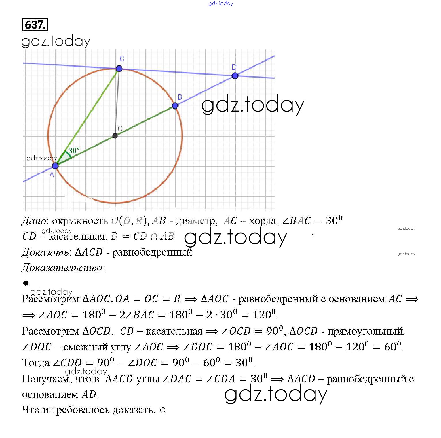 На страницах сайта gdz.today вы найдете учебный и вспомогательный материал, направленный на улучшения знаний школьной программы. ГДЗ - онлайн мир знаний Решение. Задачи 637 Учебнику по Геометрии для 7-9 класса Атанасян, Бутузов Просвещение 2010