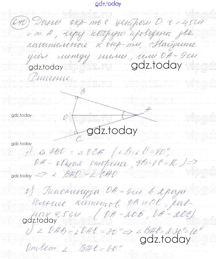 Ответы к Решение. Задачи 640 Учебнику по Геометрии для 7-9 класса Атанасян, Бутузов Просвещение 2010