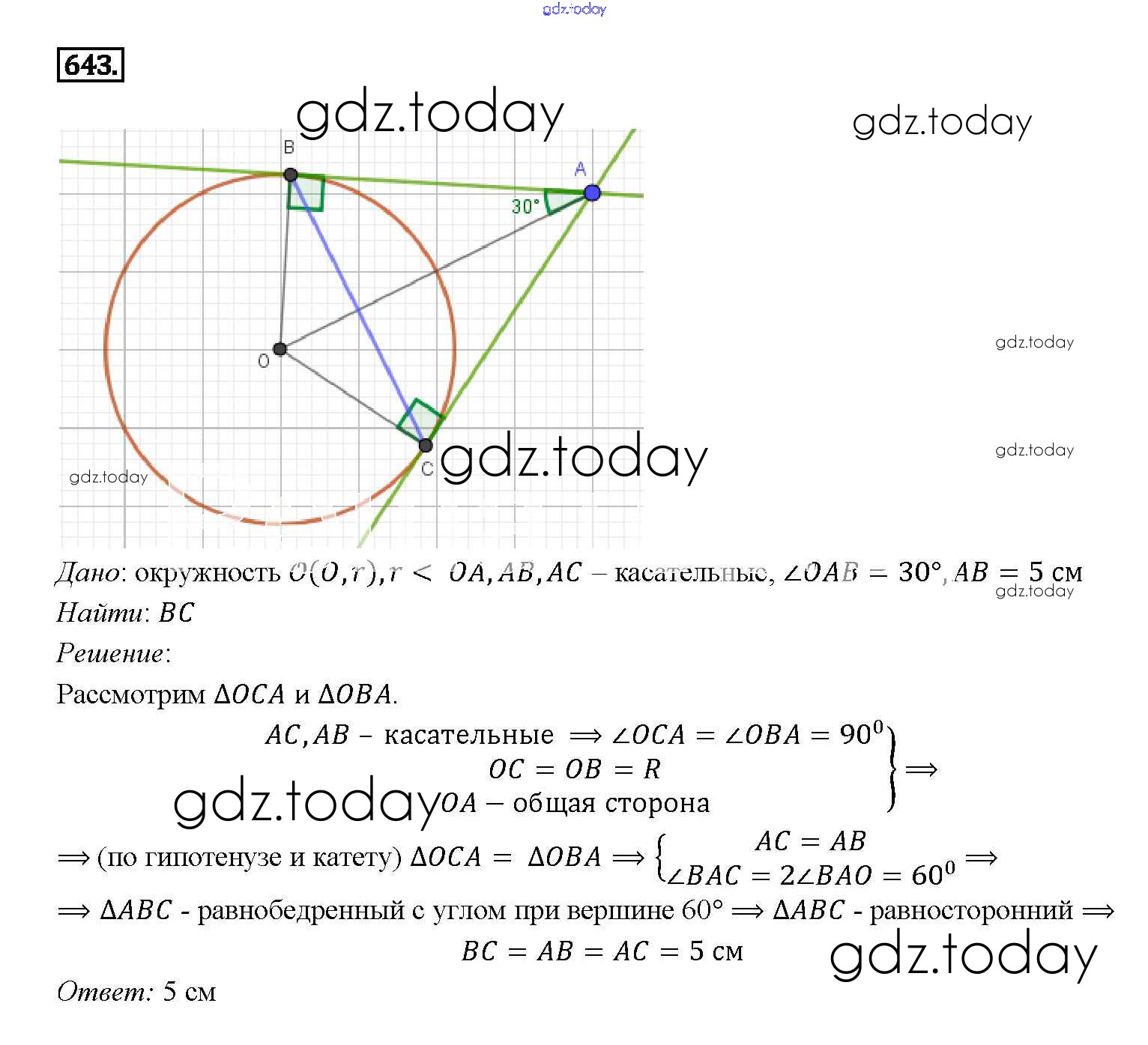 На страницах сайта gdz.today вы найдете учебный и вспомогательный материал, направленный на улучшения знаний школьной программы. ГДЗ - онлайн мир знаний Решение. Задачи 643 Учебнику по Геометрии для 7-9 класса Атанасян, Бутузов Просвещение 2010