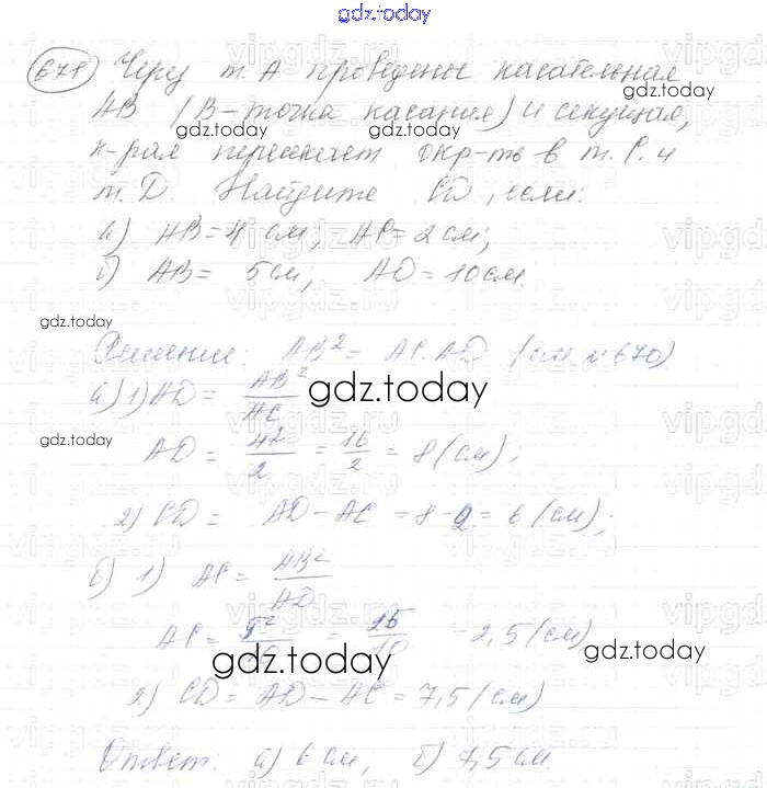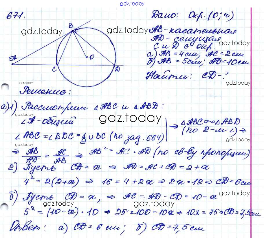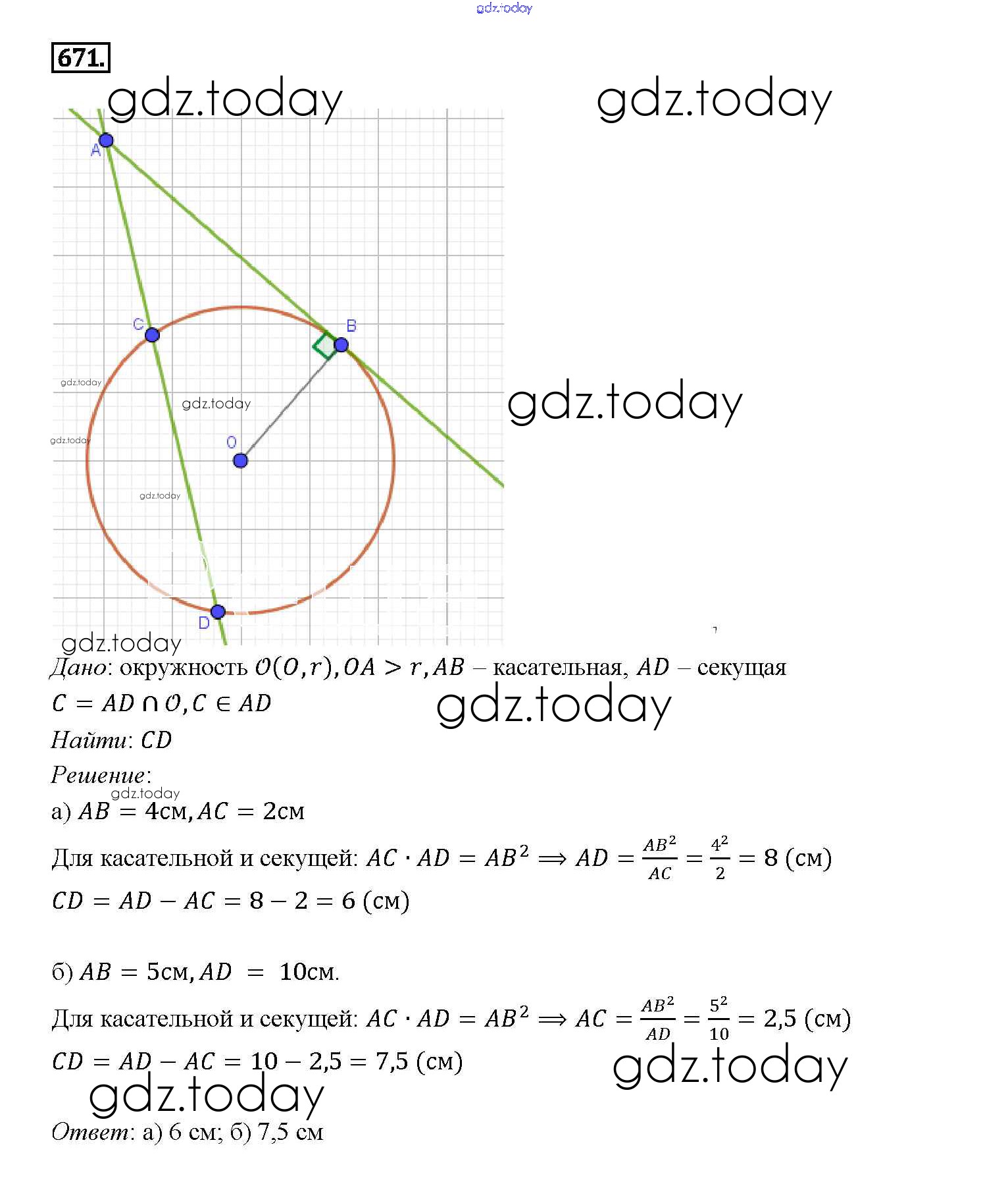 Ответы к Решение. Задачи 671 Учебнику по Геометрии для 7-9 класса Атанасян, Бутузов Просвещение 2010