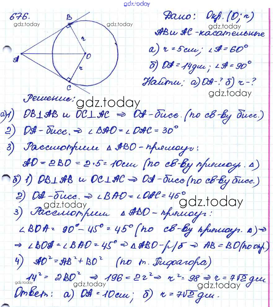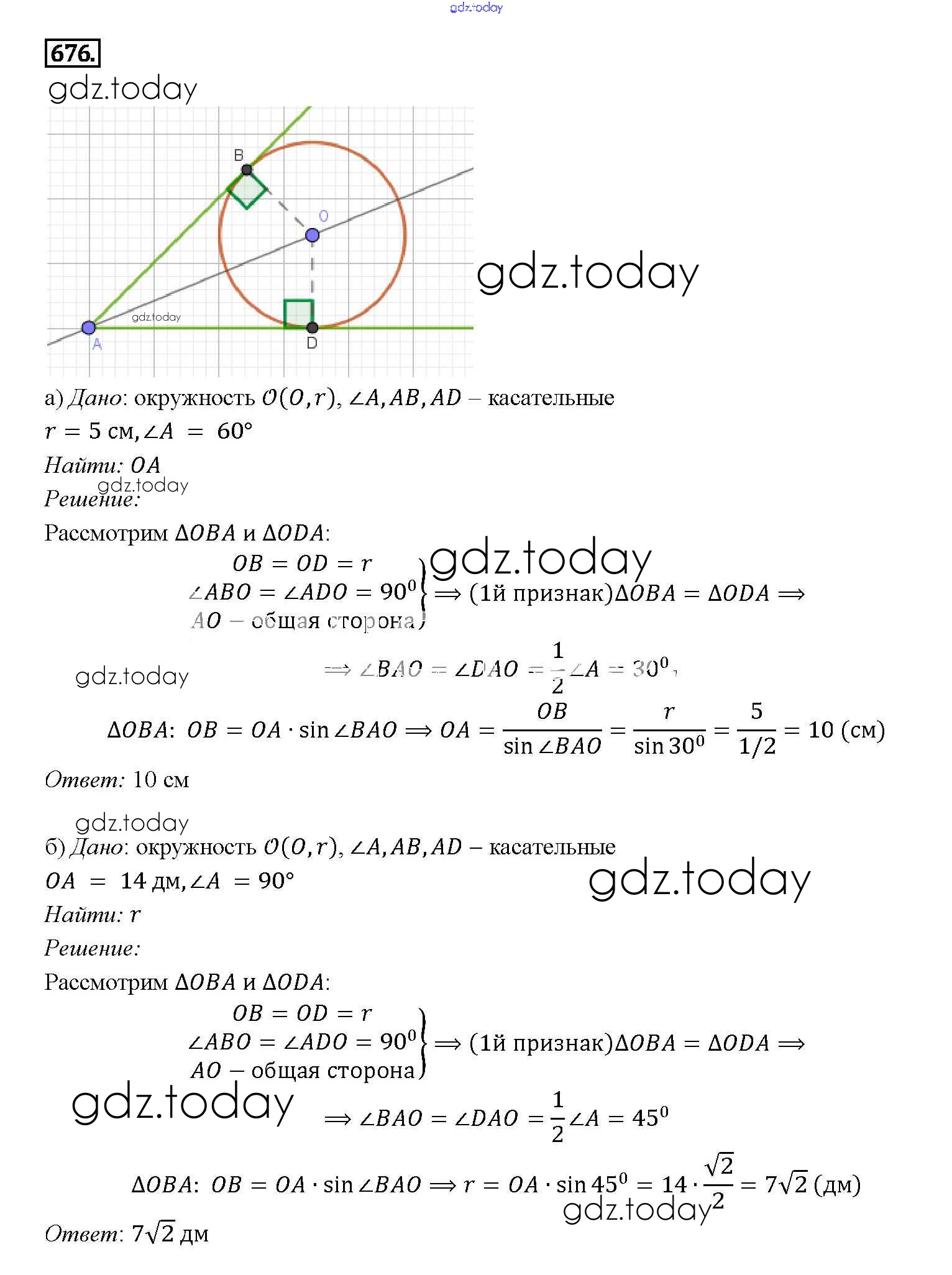 Ответы к Решение. Задачи 676 Учебнику по Геометрии для 7-9 класса Атанасян, Бутузов Просвещение 2010