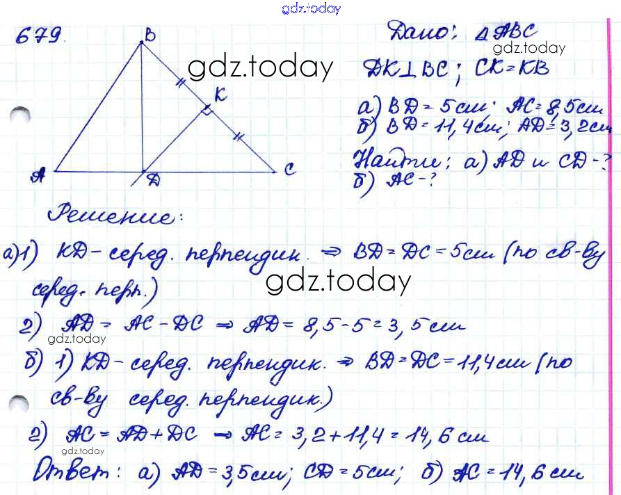 Ответы к Решение. Задачи 679 Учебнику по Геометрии для 7-9 класса Атанасян, Бутузов Просвещение 2010