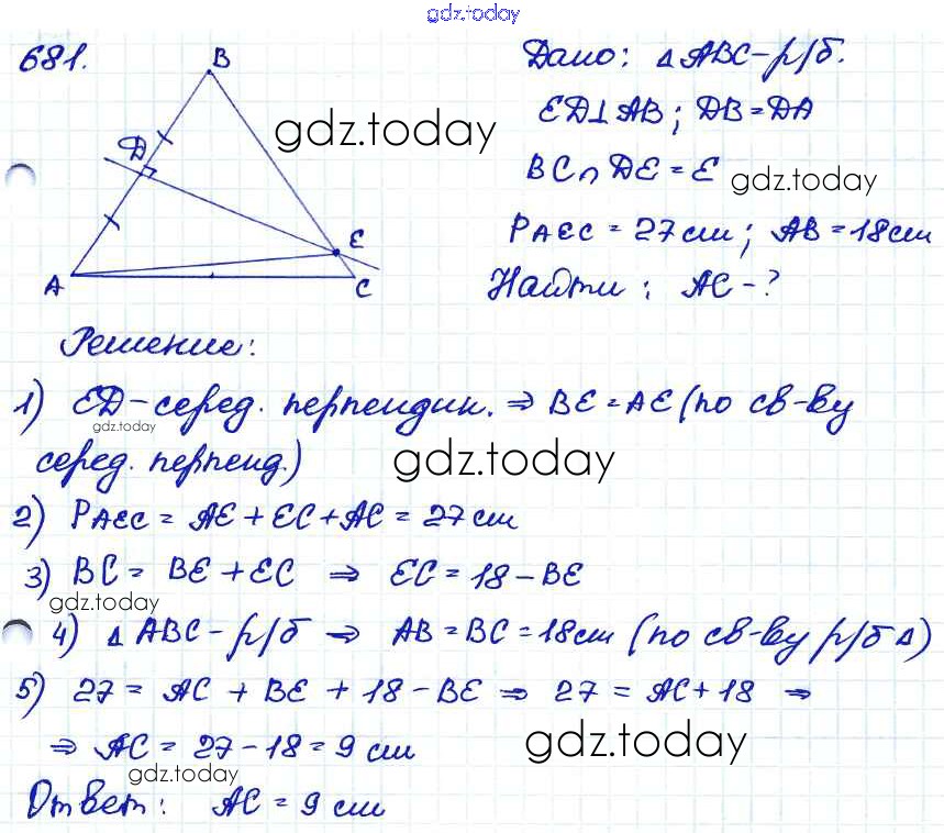 Ответы к Решение. Задачи 681 Учебнику по Геометрии для 7-9 класса Атанасян, Бутузов Просвещение 2010