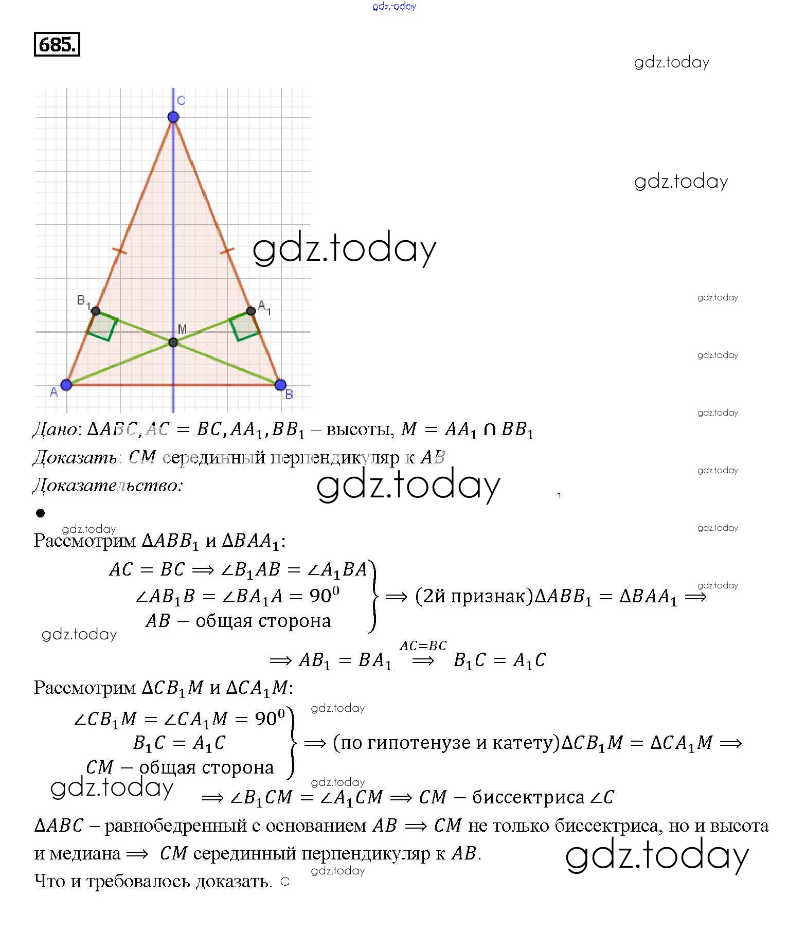 Ответы к Решение. Задачи 685 Учебнику по Геометрии для 7-9 класса Атанасян, Бутузов Просвещение 2010