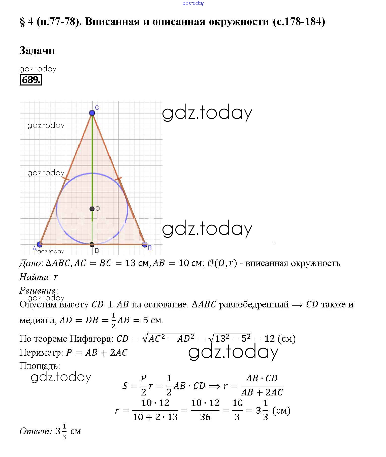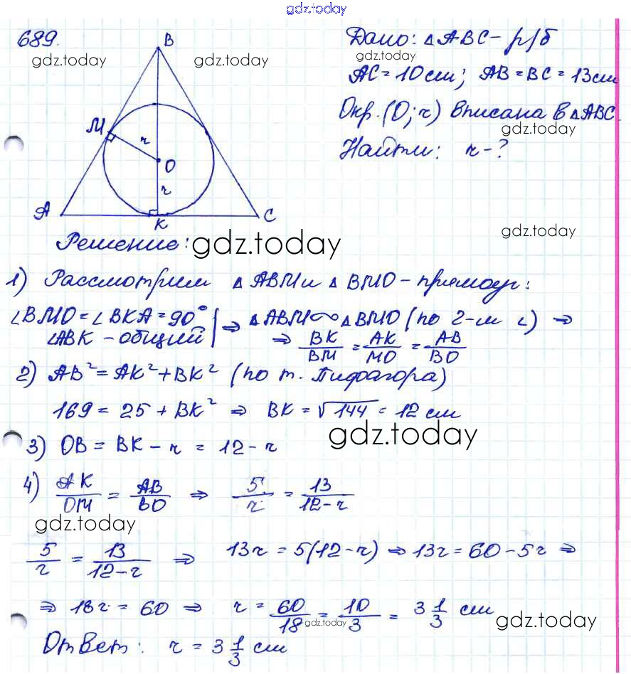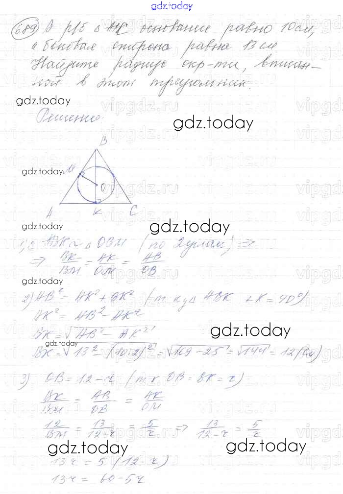 Ответы к Решение. Задачи 689 Учебнику по Геометрии для 7-9 класса Атанасян, Бутузов Просвещение 2010