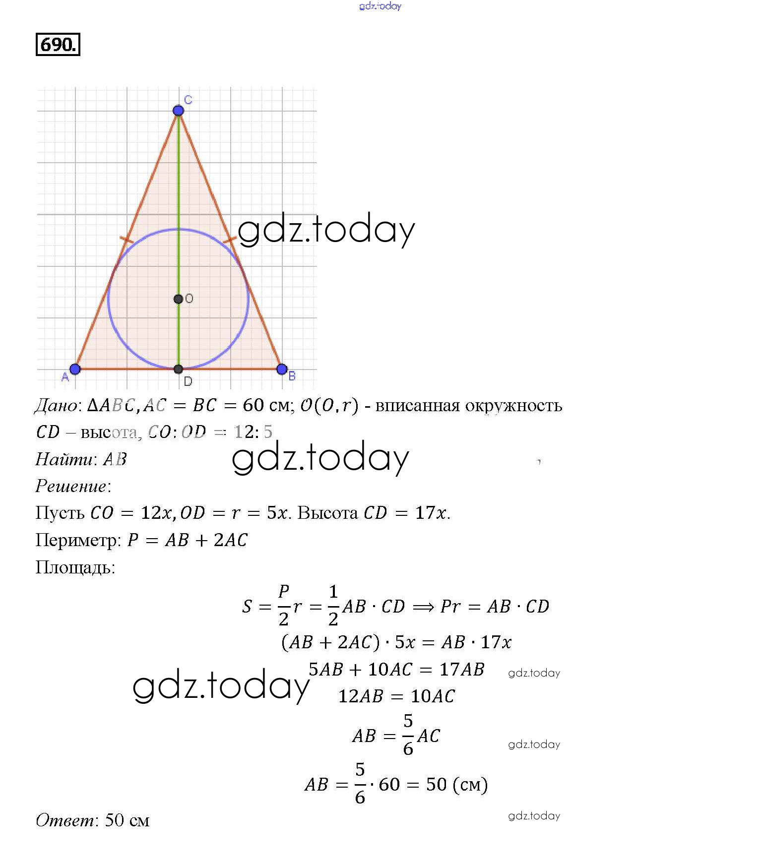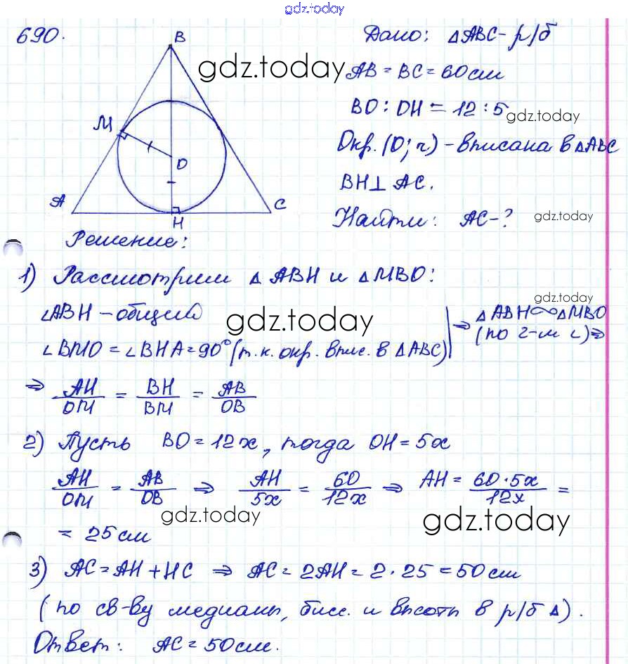 Ответы к Решение. Задачи 690 Учебнику по Геометрии для 7-9 класса Атанасян, Бутузов Просвещение 2010