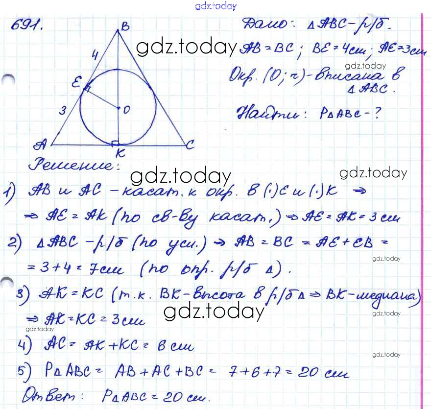Ответы к Решение. Задачи 691 Учебнику по Геометрии для 7-9 класса Атанасян, Бутузов Просвещение 2010