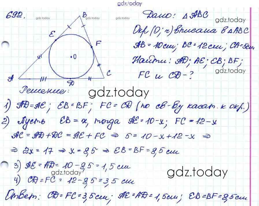 Ответы к Решение. Задачи 692 Учебнику по Геометрии для 7-9 класса Атанасян, Бутузов Просвещение 2010