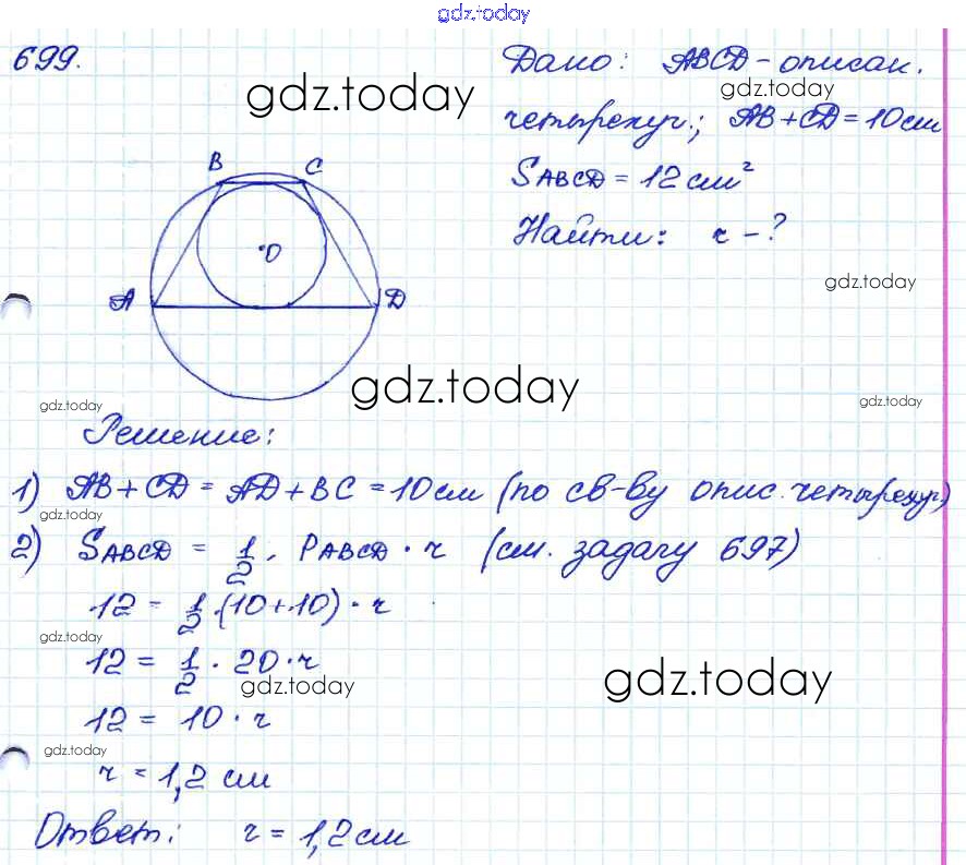 Ответы к Решение. Задачи 699 Учебнику по Геометрии для 7-9 класса Атанасян, Бутузов Просвещение 2010