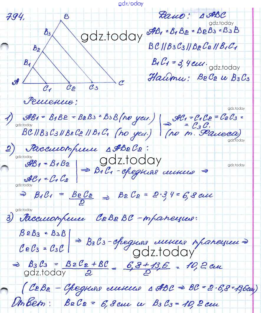 Ответы к Решение. Задачи 794 Учебнику по Геометрии для 7-9 класса Атанасян, Бутузов Просвещение 2010