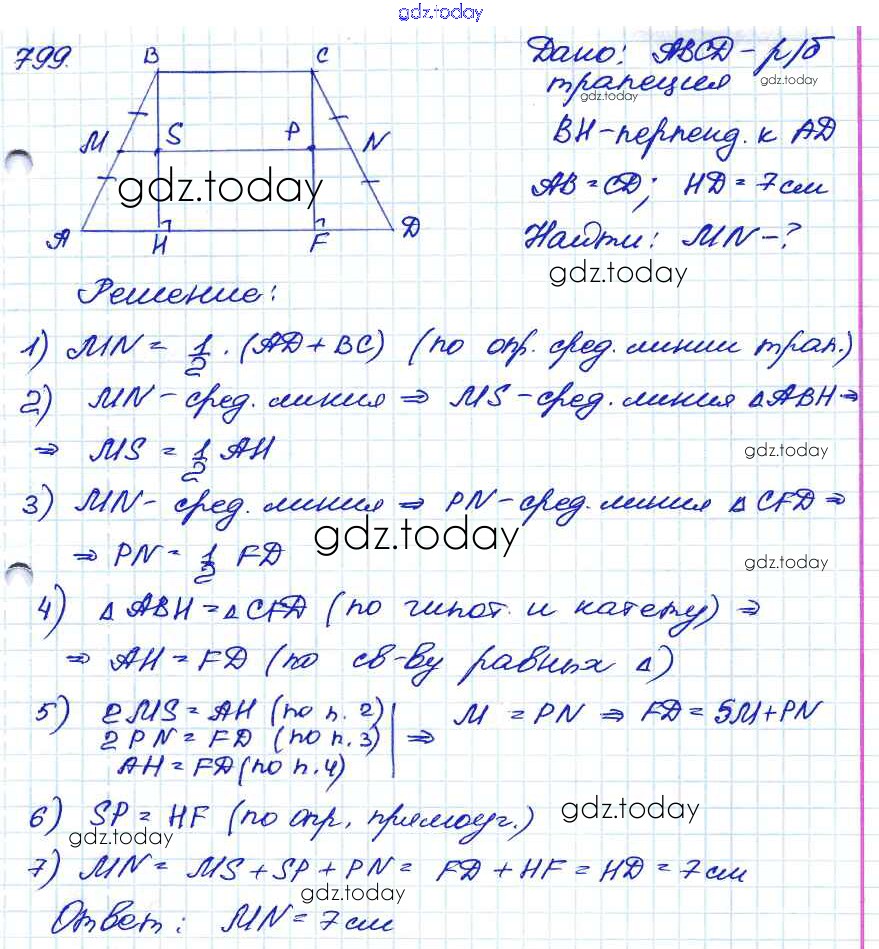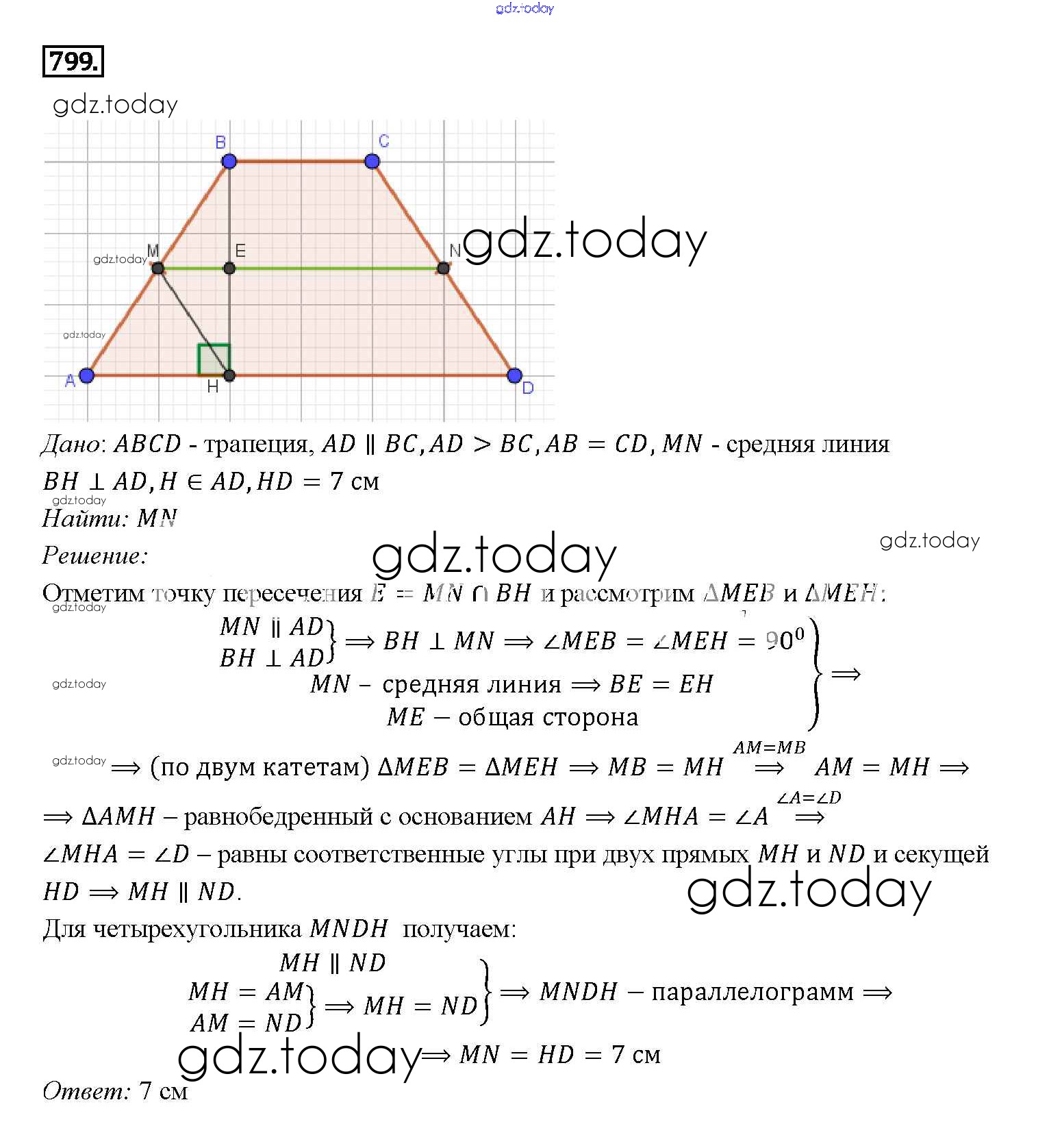 Ответы к Решение. Задачи 799 Учебнику по Геометрии для 7-9 класса Атанасян, Бутузов Просвещение 2010