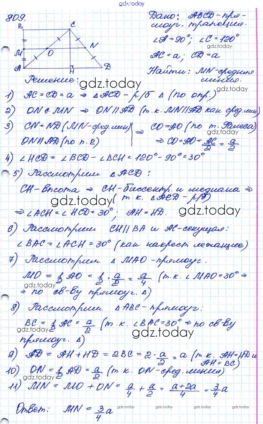 Ответы к Решение. Задачи 809 Учебнику по Геометрии для 7-9 класса Атанасян, Бутузов Просвещение 2010