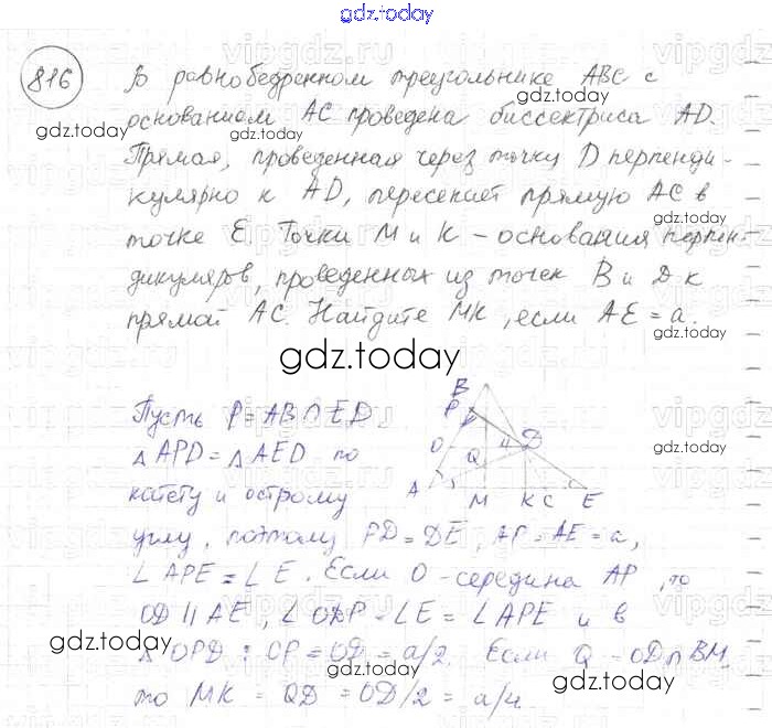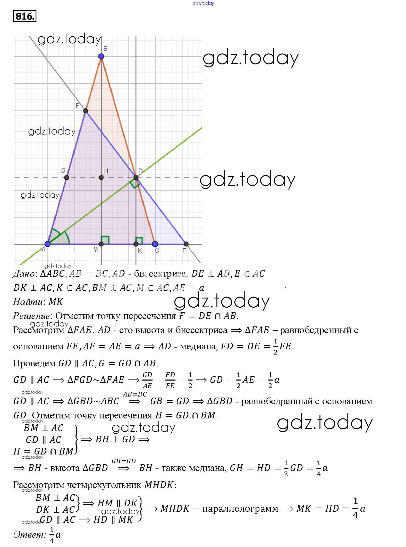 Ответы к Решение. Задачи 816 Учебнику по Геометрии для 7-9 класса Атанасян, Бутузов Просвещение 2010