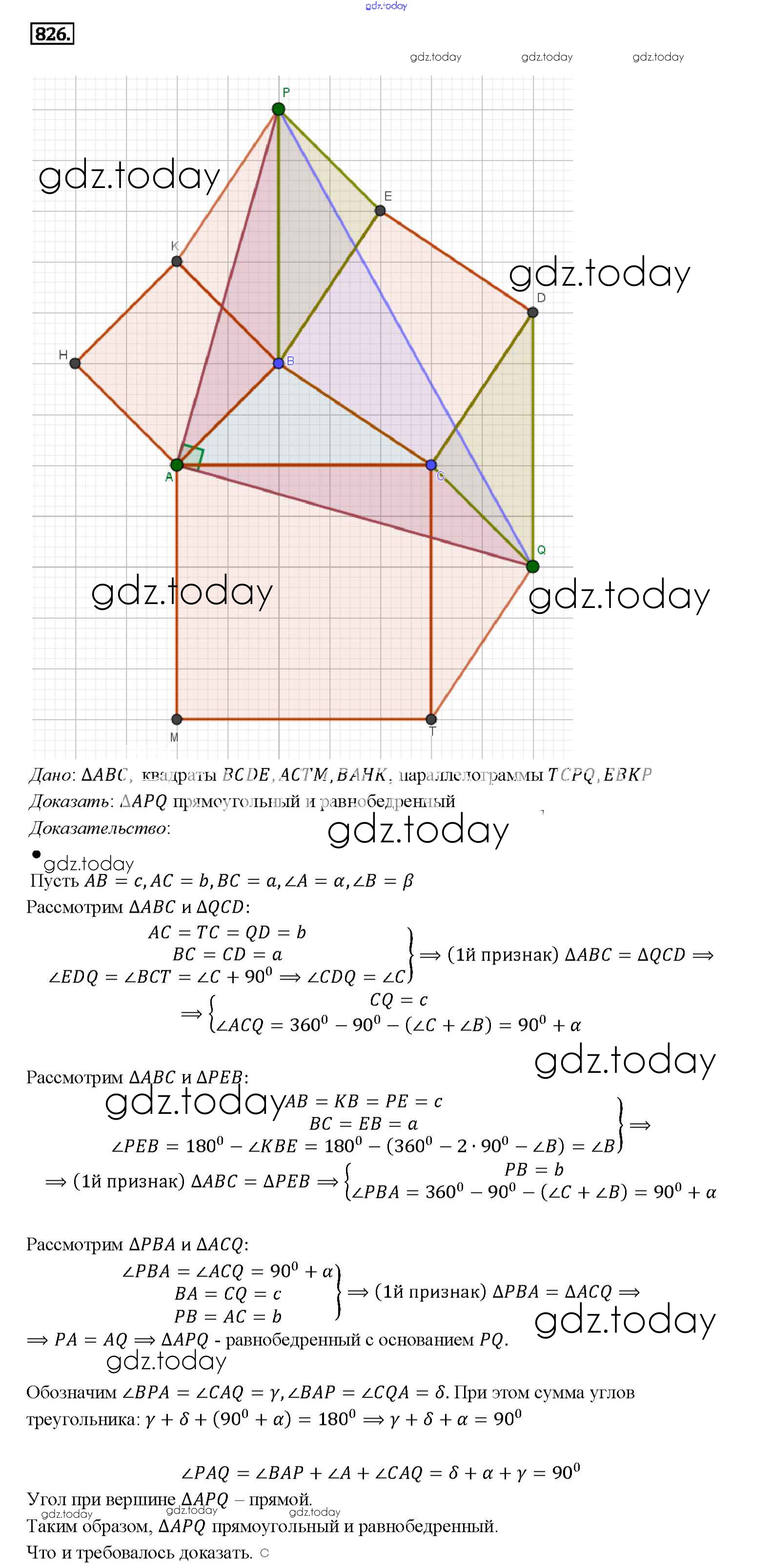 Ответы к Решение. Задачи 826 Учебнику по Геометрии для 7-9 класса Атанасян, Бутузов Просвещение 2010