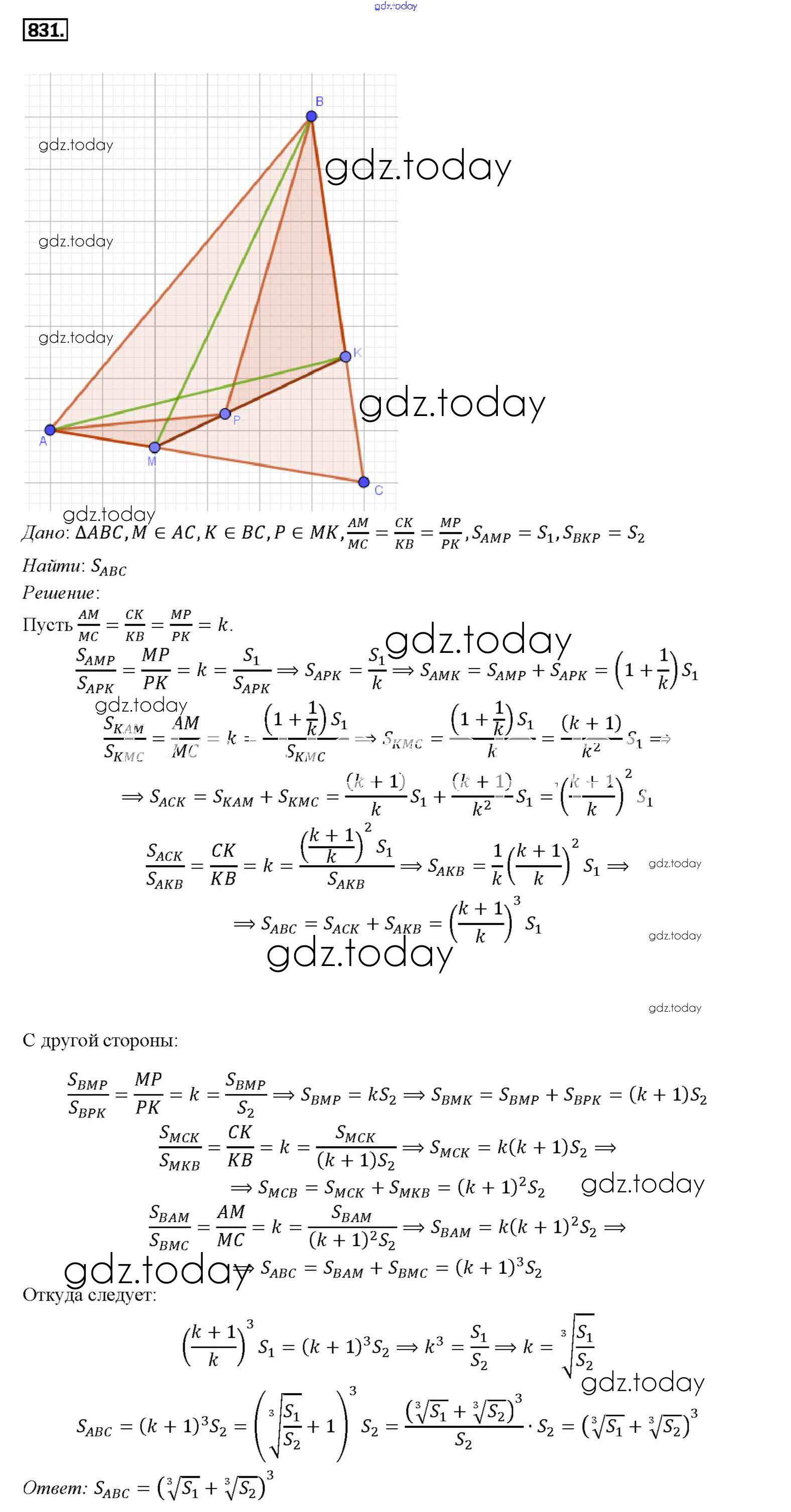 Ответы к Решение. Задачи 831 Учебнику по Геометрии для 7-9 класса Атанасян, Бутузов Просвещение 2010
