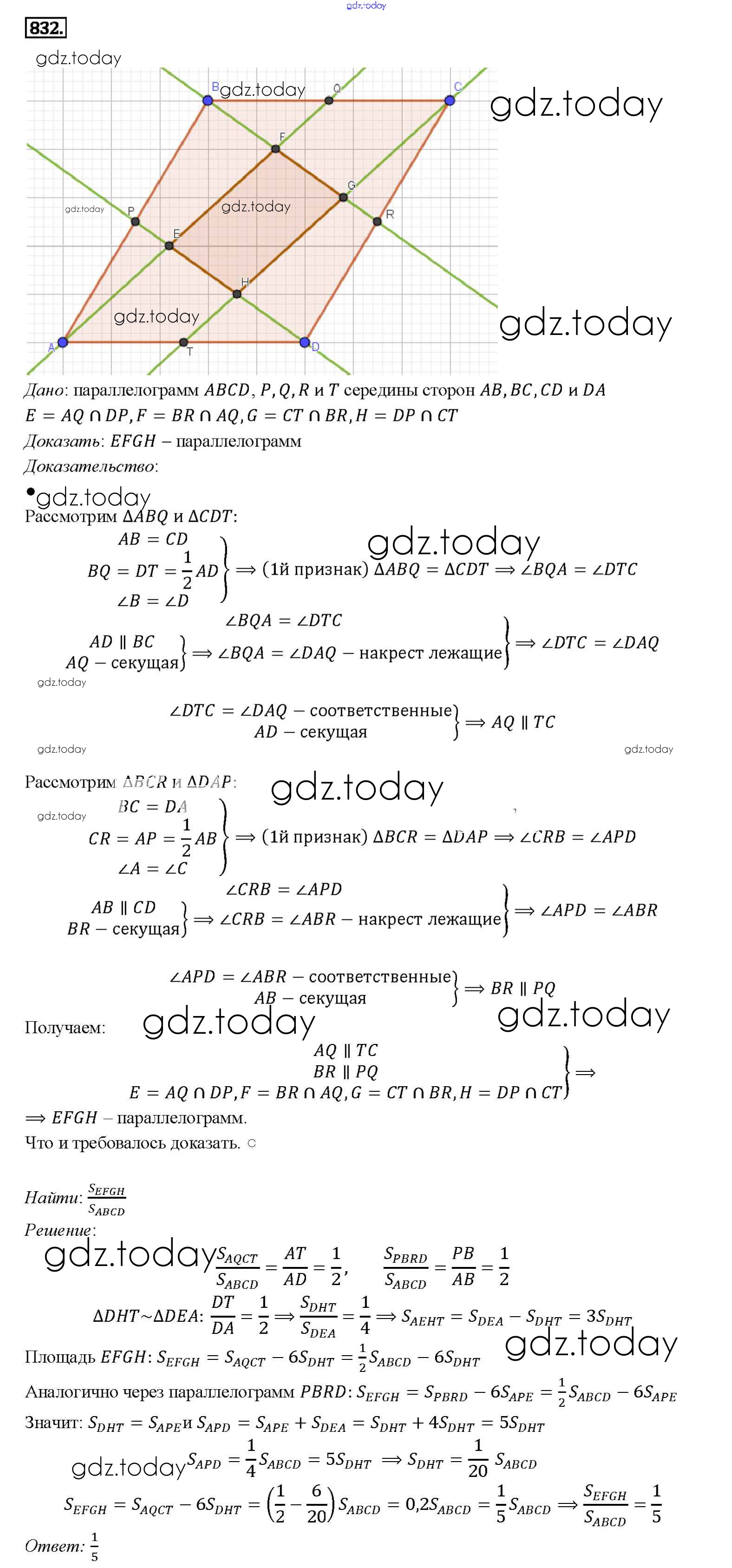 Ответы к Решение. Задачи 832 Учебнику по Геометрии для 7-9 класса Атанасян, Бутузов Просвещение 2010