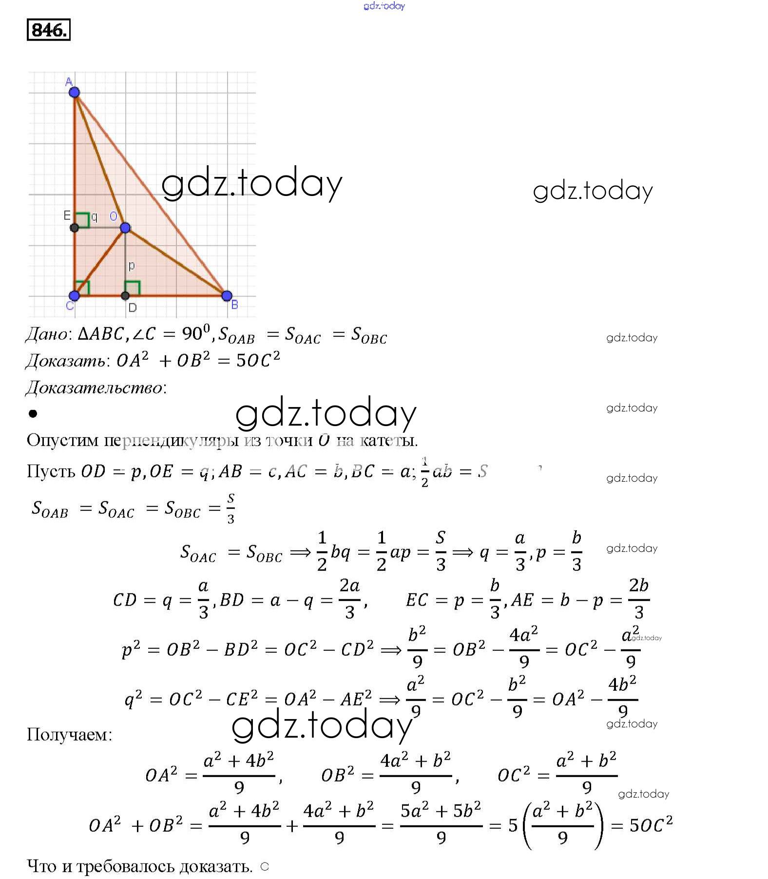 Ответы к Решение. Задачи 846 Учебнику по Геометрии для 7-9 класса Атанасян, Бутузов Просвещение 2010
