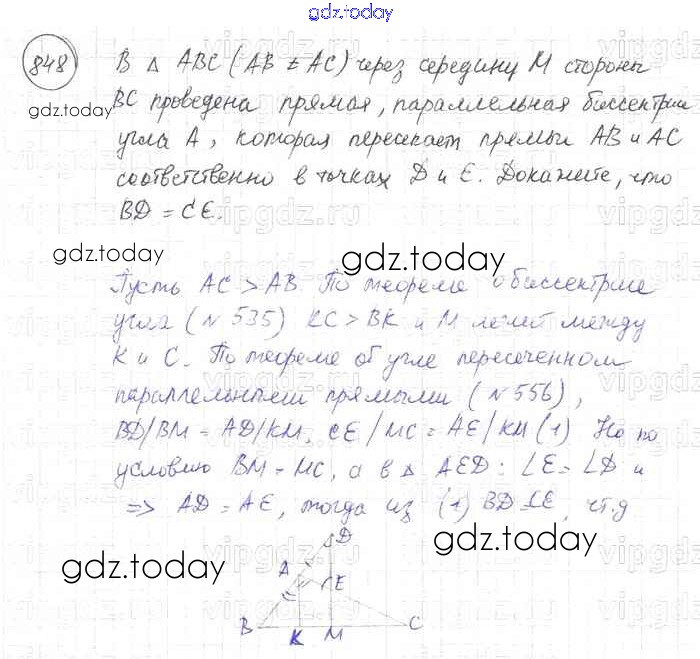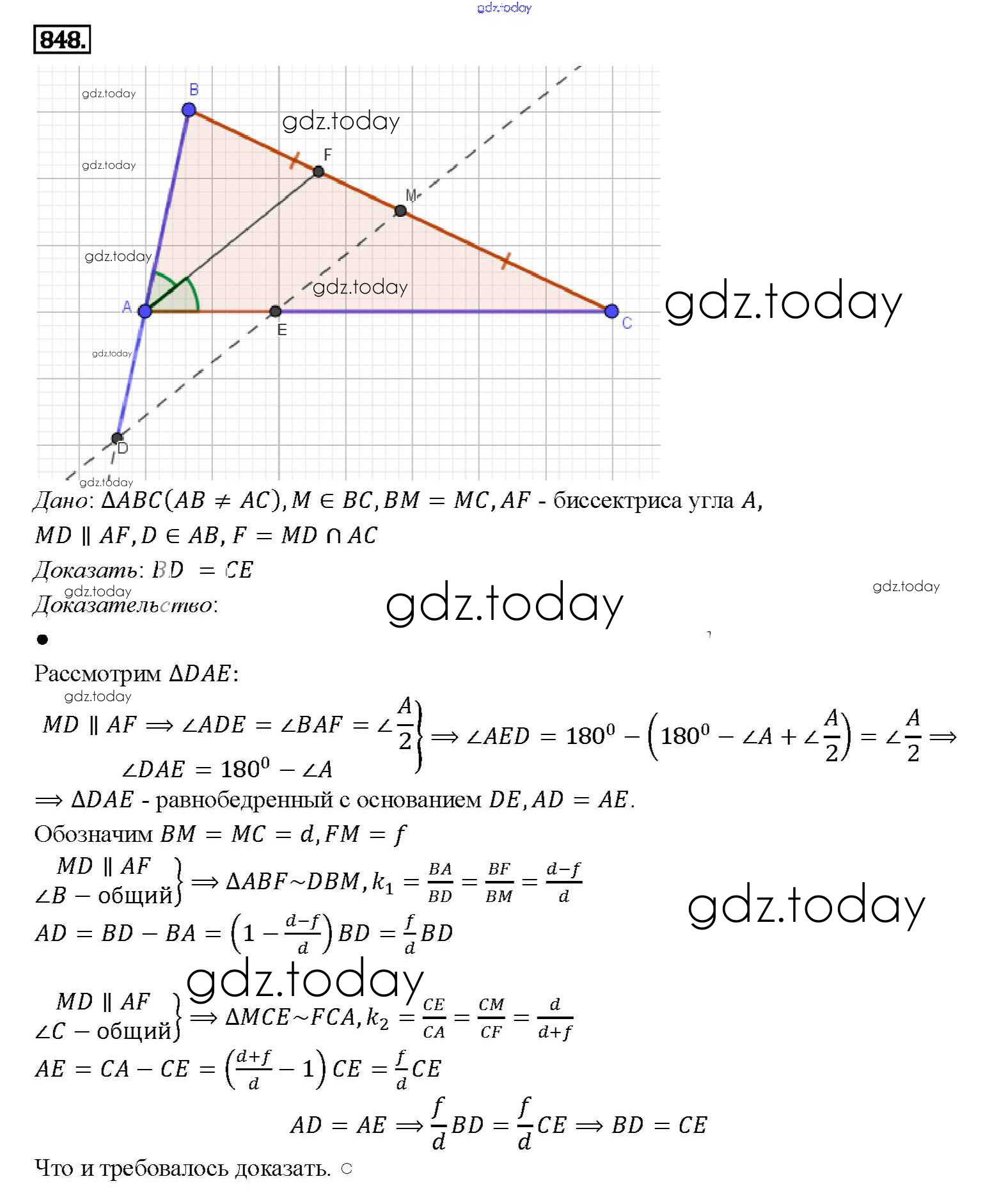 Ответы к Решение. Задачи 848 Учебнику по Геометрии для 7-9 класса Атанасян, Бутузов Просвещение 2010