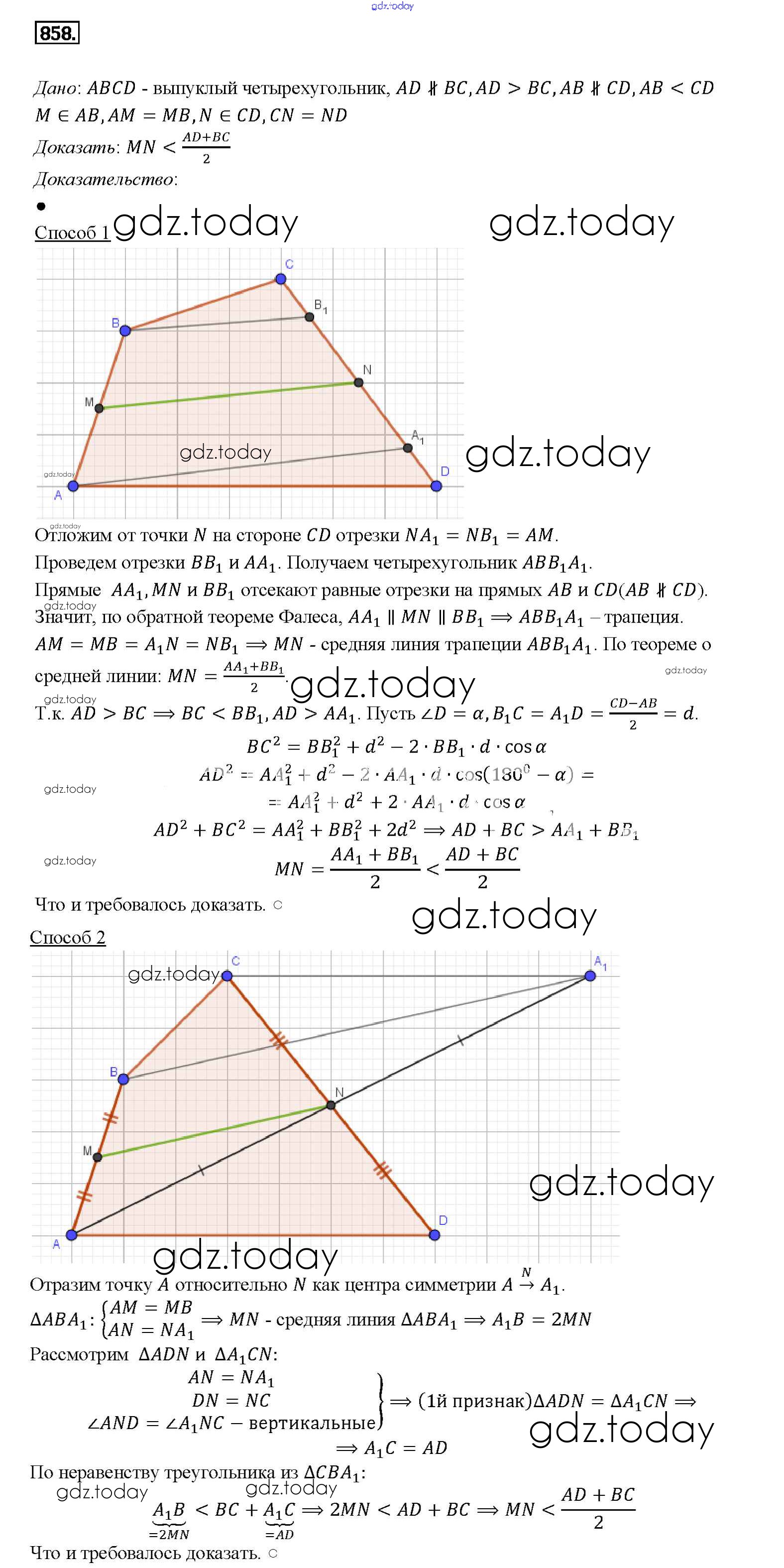 Ответы к Решение. Задачи 858 Учебнику по Геометрии для 7-9 класса Атанасян, Бутузов Просвещение 2010