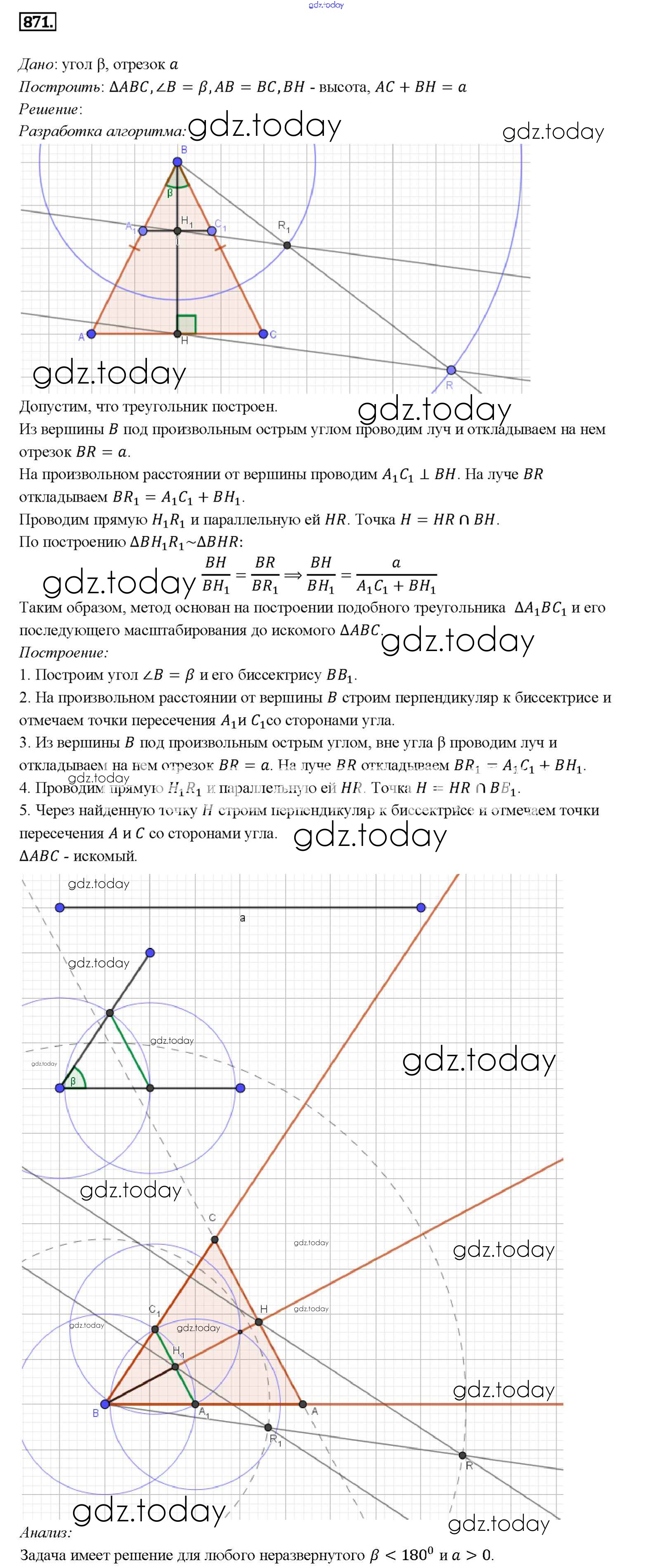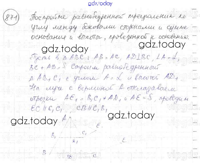 Ответы к Решение. Задачи 871 Учебнику по Геометрии для 7-9 класса Атанасян, Бутузов Просвещение 2010