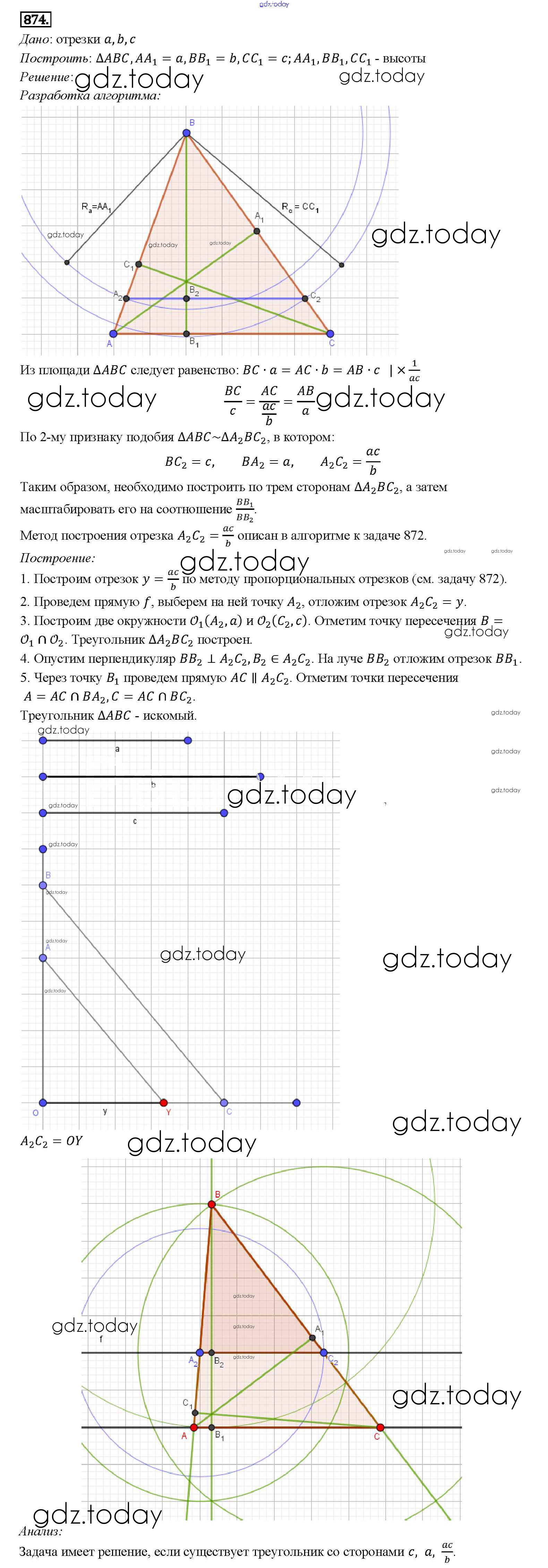 Ответы к Решение. Задачи 874 Учебнику по Геометрии для 7-9 класса Атанасян, Бутузов Просвещение 2010