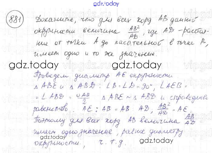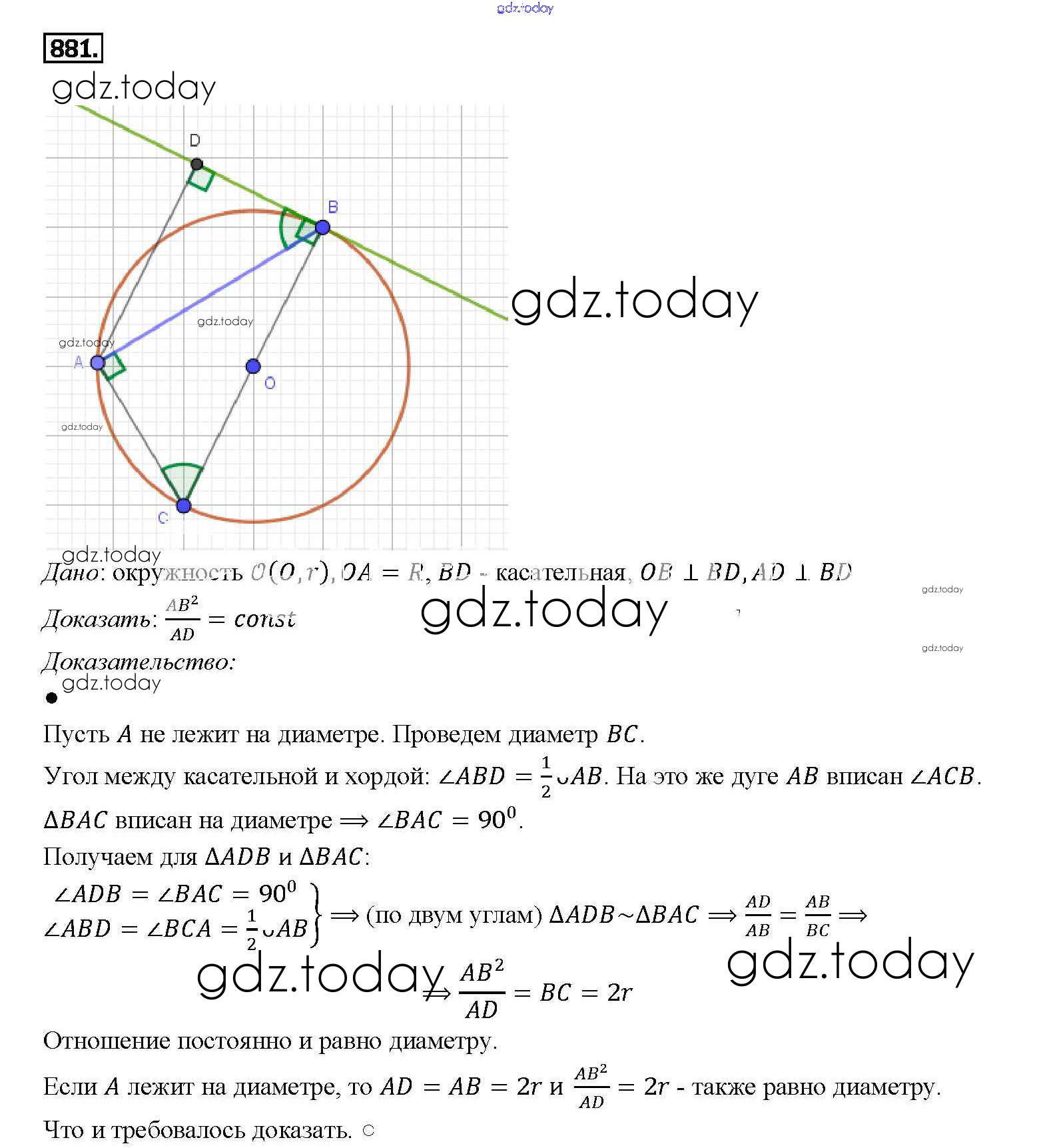 На страницах сайта gdz.today вы найдете учебный и вспомогательный материал, направленный на улучшения знаний школьной программы. ГДЗ - онлайн мир знаний Решение. Задачи 881 Учебнику по Геометрии для 7-9 класса Атанасян, Бутузов Просвещение 2010