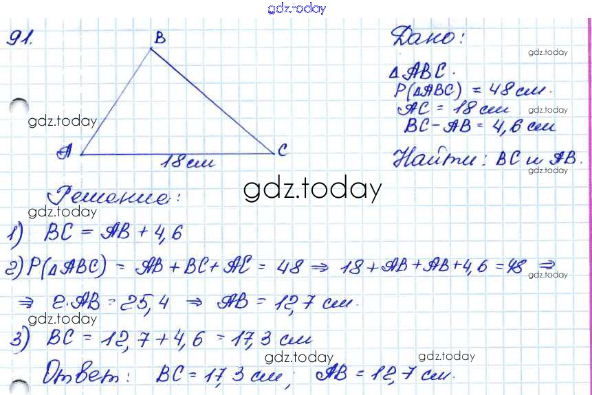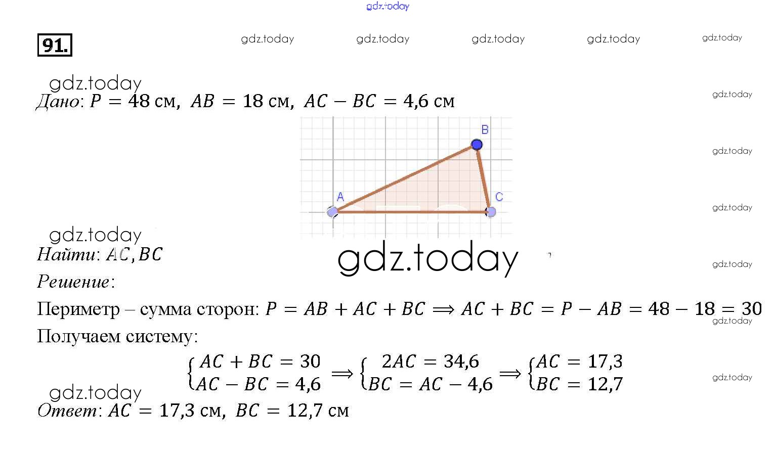 Ответы к Решение. Задачи 91 Учебнику по Геометрии для 7-9 класса Атанасян, Бутузов Просвещение 2010