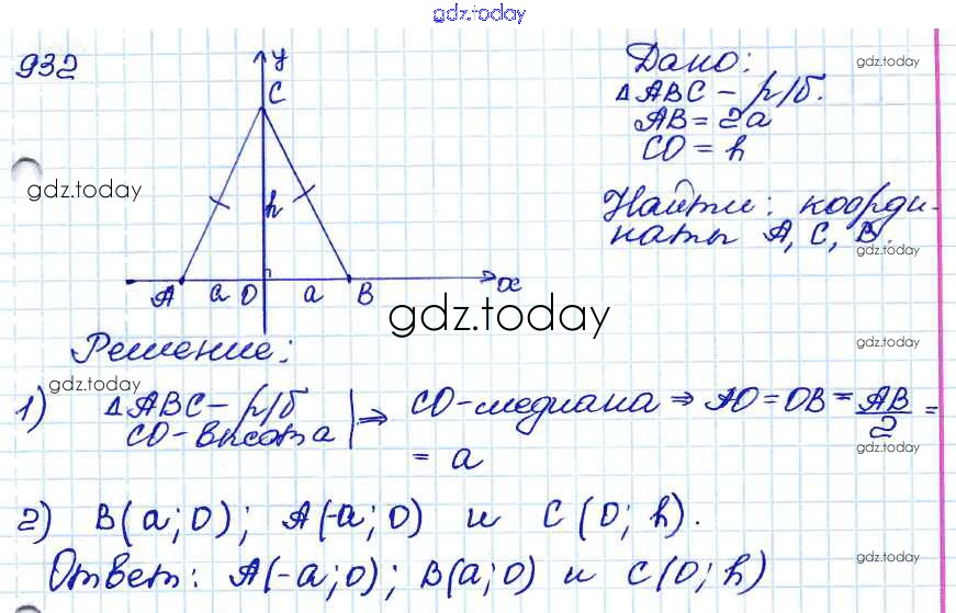 Ответы к Решение. Задачи 932 Учебнику по Геометрии для 7-9 класса Атанасян, Бутузов Просвещение 2010