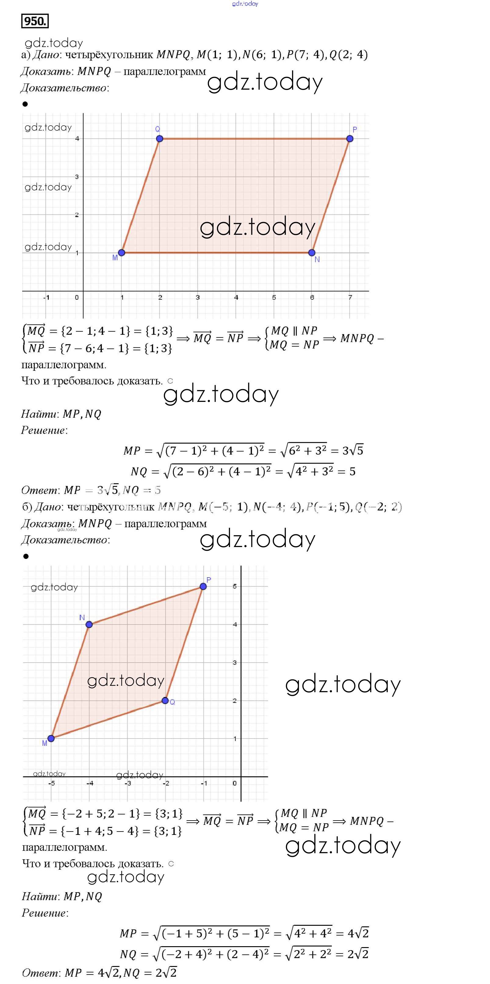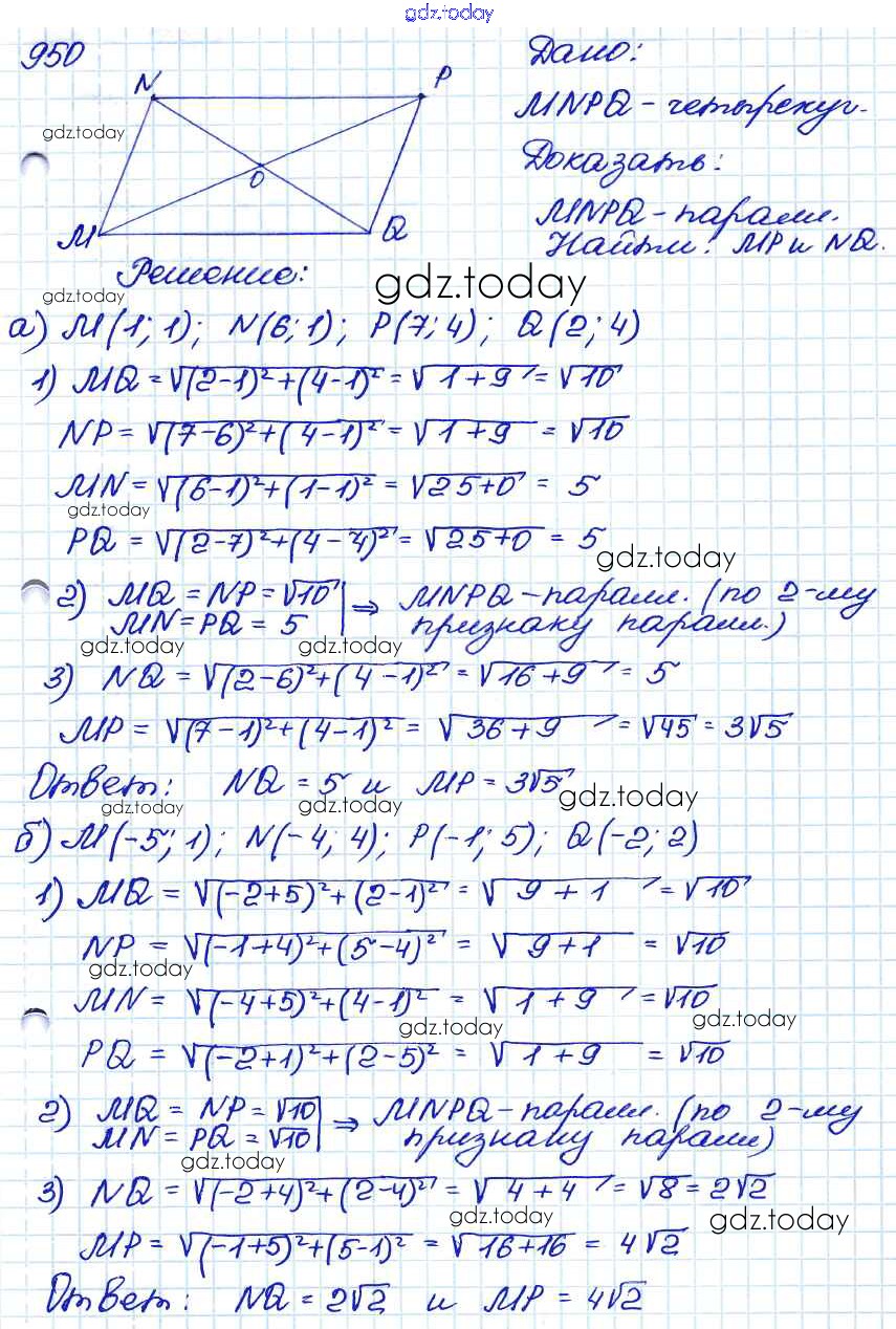 Ответы к Решение. Задачи 950 Учебнику по Геометрии для 7-9 класса Атанасян, Бутузов Просвещение 2010