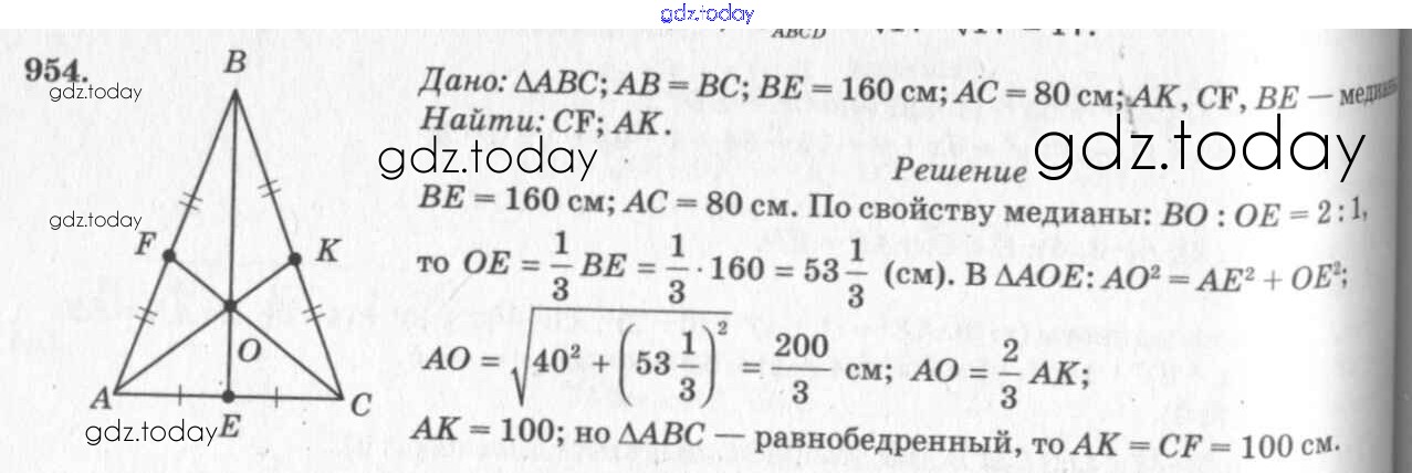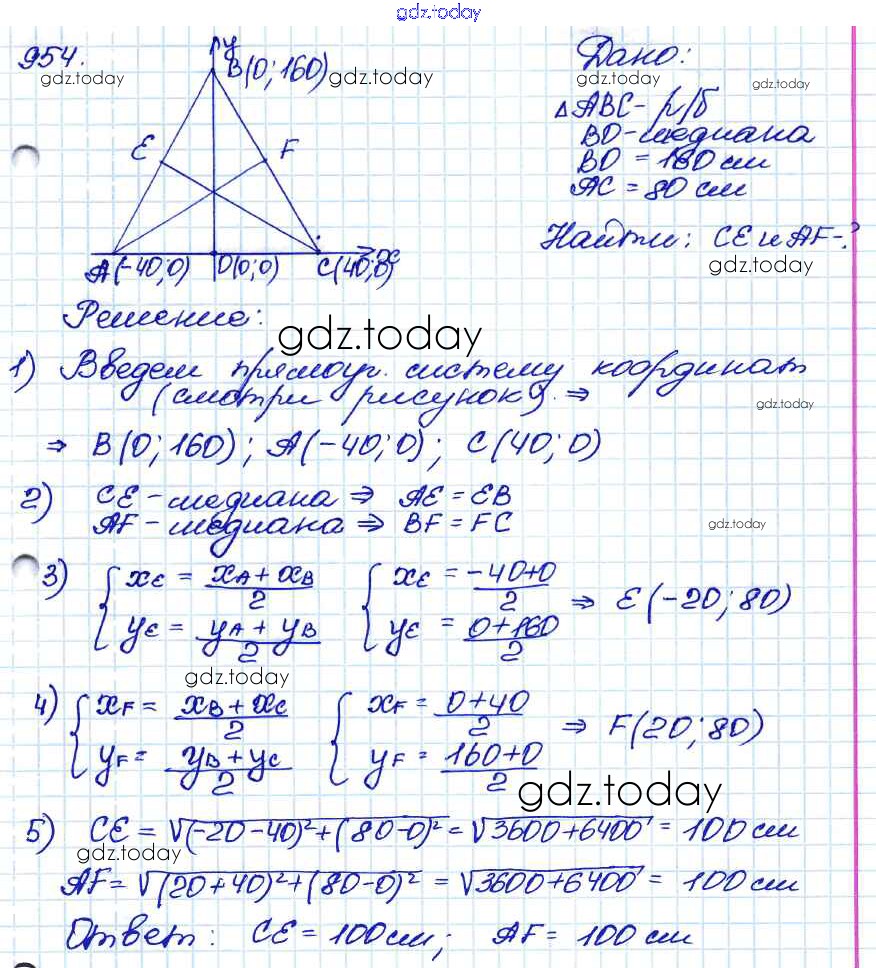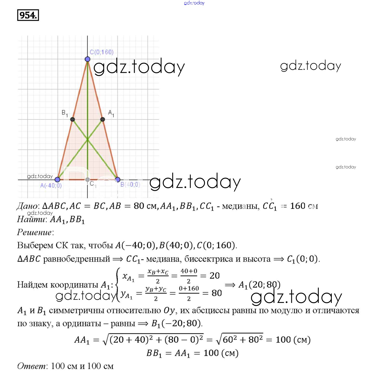 Ответы к Решение. Задачи 954 Учебнику по Геометрии для 7-9 класса Атанасян, Бутузов Просвещение 2010