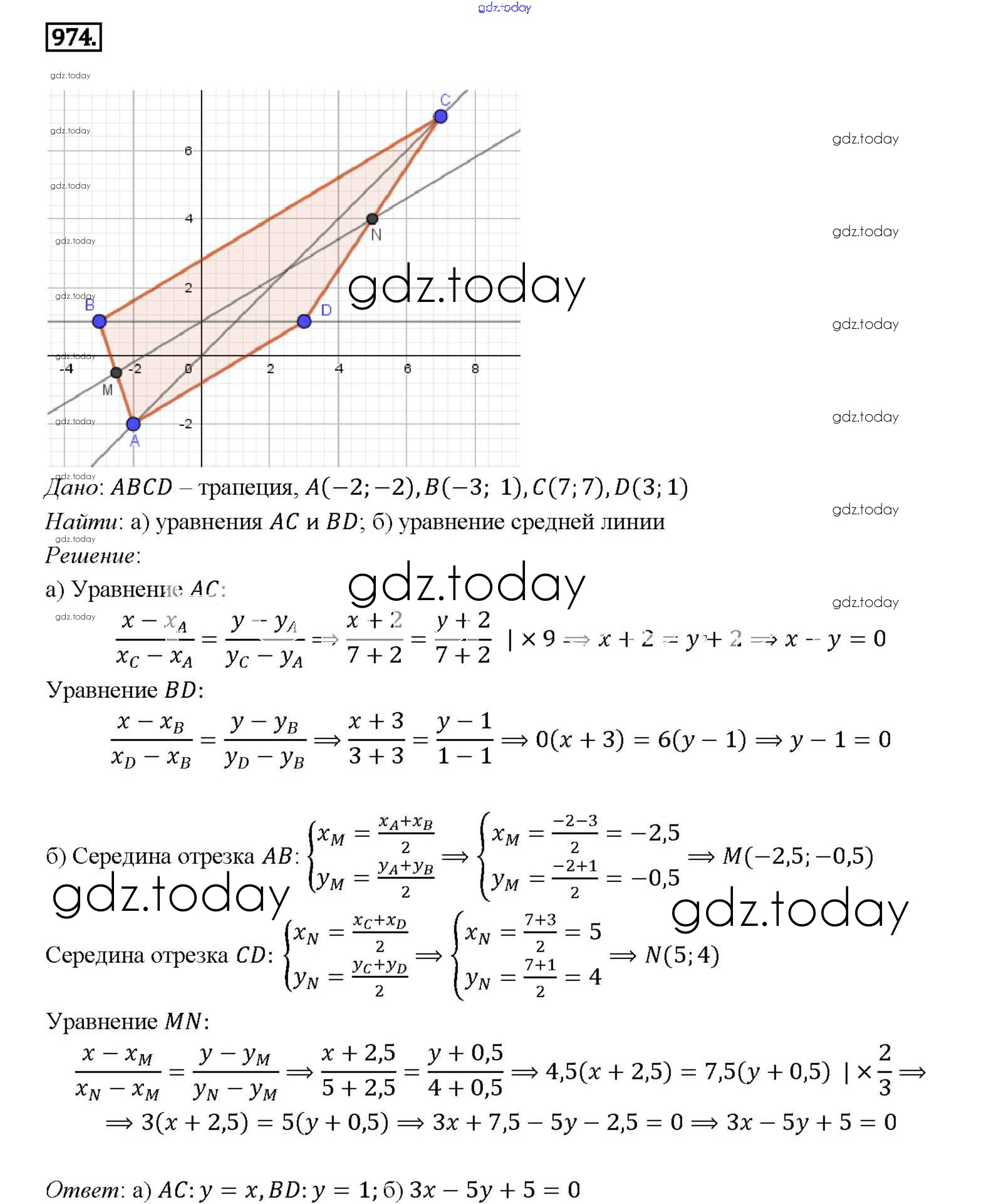 Ответы к Решение. Задачи 974 Учебнику по Геометрии для 7-9 класса Атанасян, Бутузов Просвещение 2010