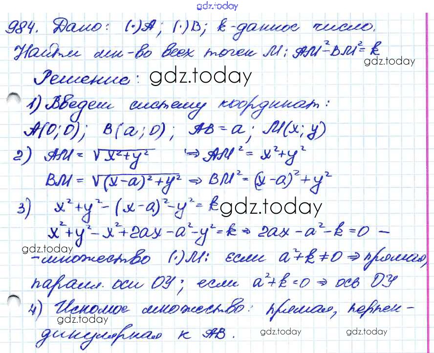 На страницах сайта gdz.today вы найдете учебный и вспомогательный материал, направленный на улучшения знаний школьной программы. ГДЗ - онлайн мир знаний Решение. Задачи 984 Учебнику по Геометрии для 7-9 класса Атанасян, Бутузов Просвещение 2010