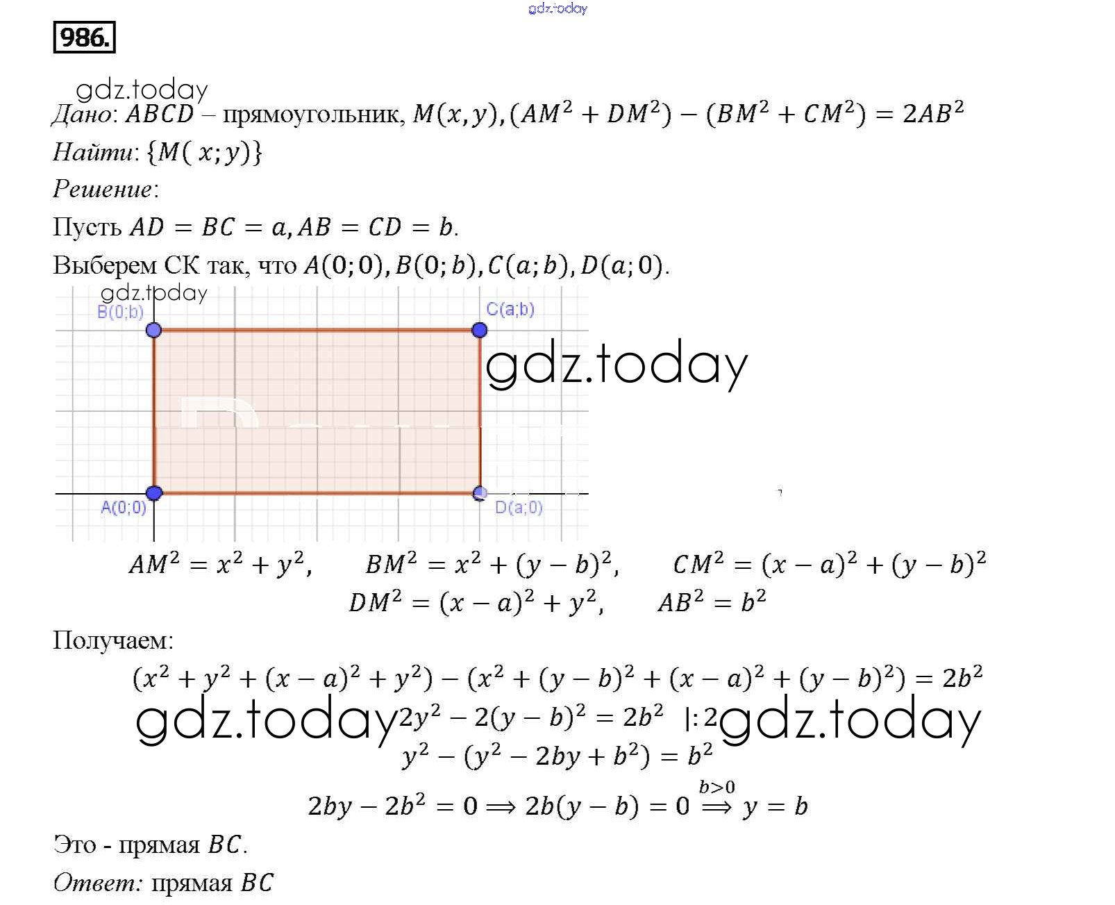 Ответы к Решение. Задачи 986 Учебнику по Геометрии для 7-9 класса Атанасян, Бутузов Просвещение 2010