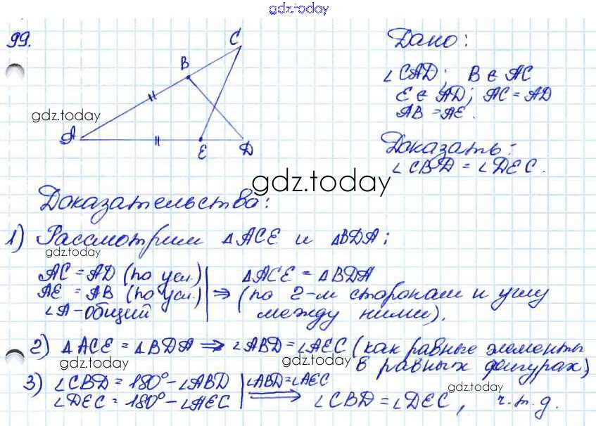 Ответы к Решение. Задачи 99 Учебнику по Геометрии для 7-9 класса Атанасян, Бутузов Просвещение 2010
