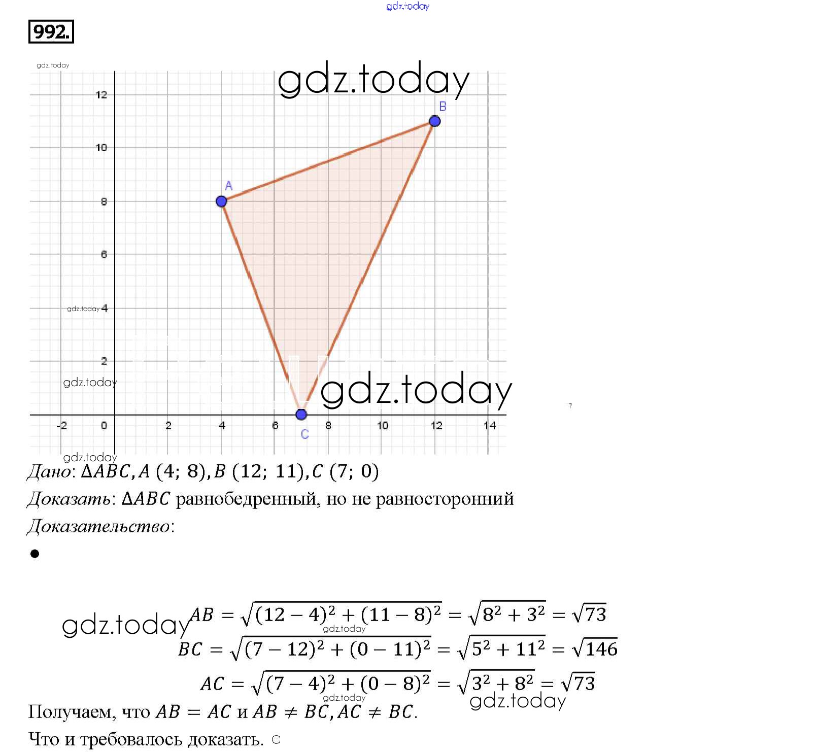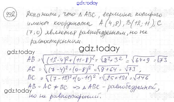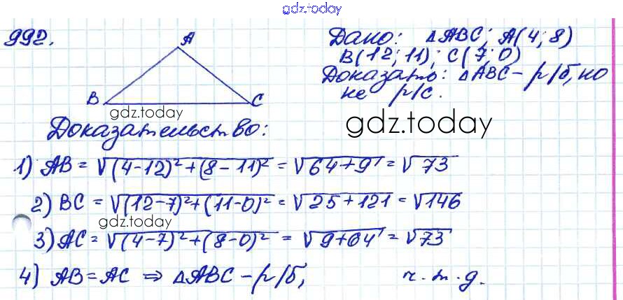 Ответы к Решение. Задачи 992 Учебнику по Геометрии для 7-9 класса Атанасян, Бутузов Просвещение 2010
