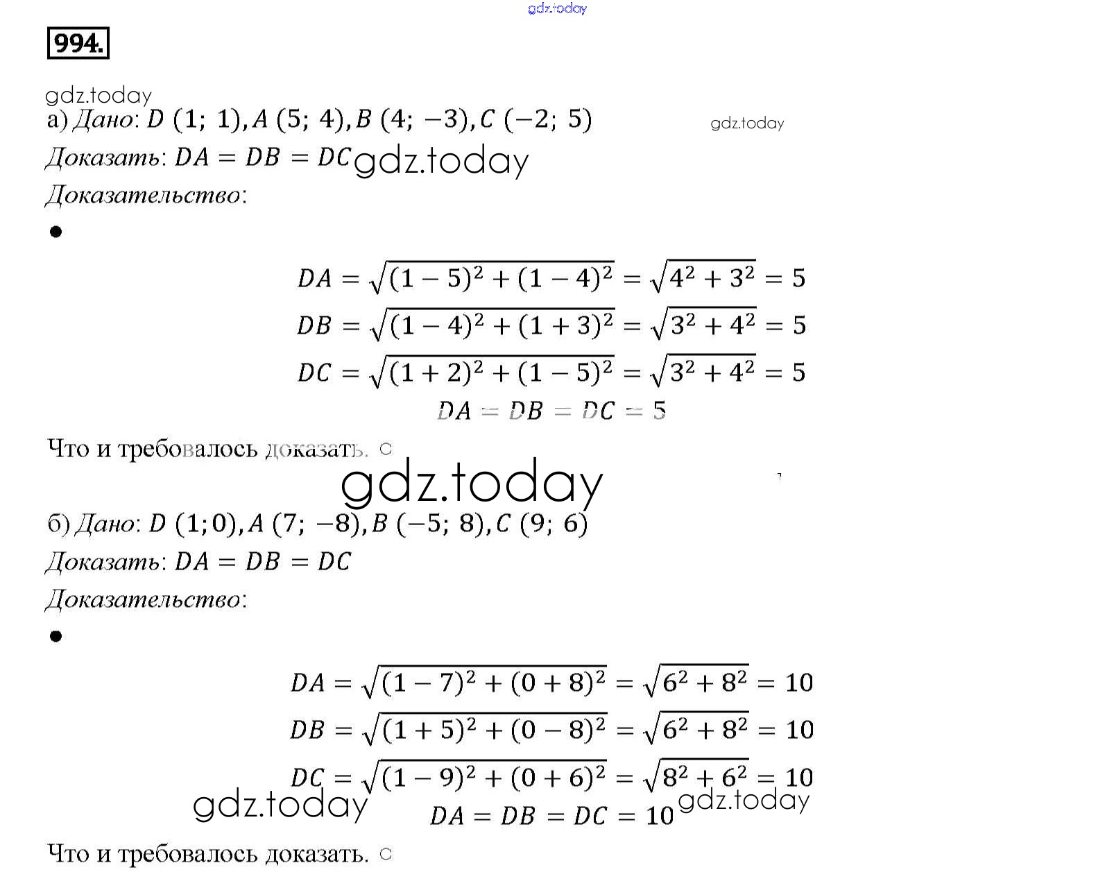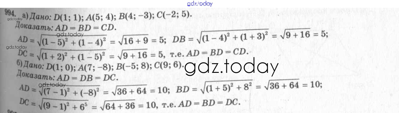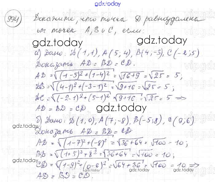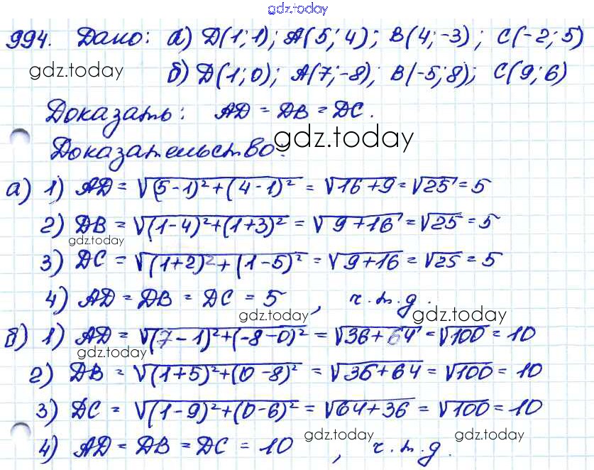 Ответы к Решение. Задачи 994 Учебнику по Геометрии для 7-9 класса Атанасян, Бутузов Просвещение 2010