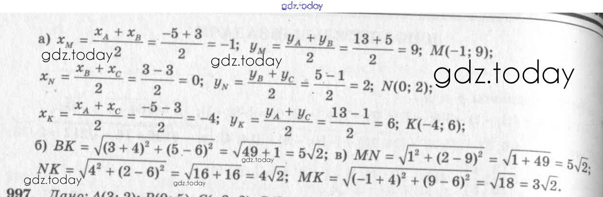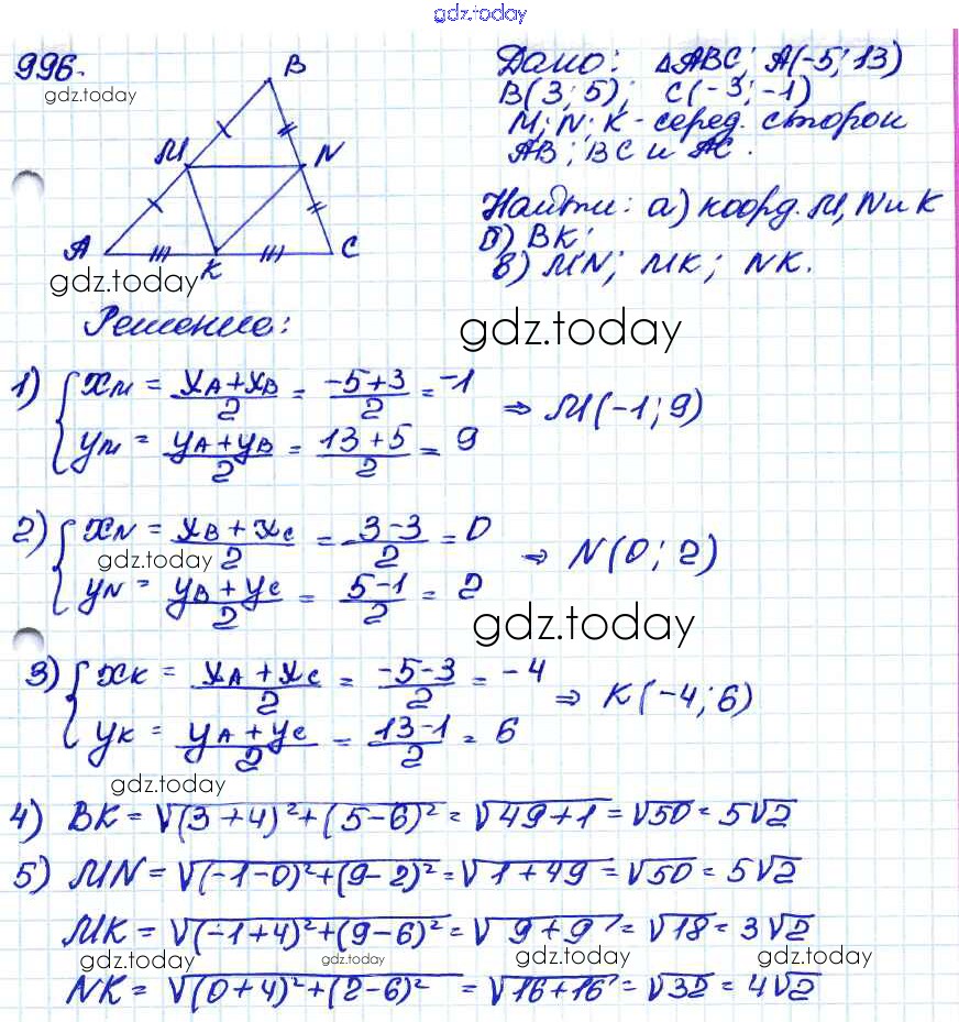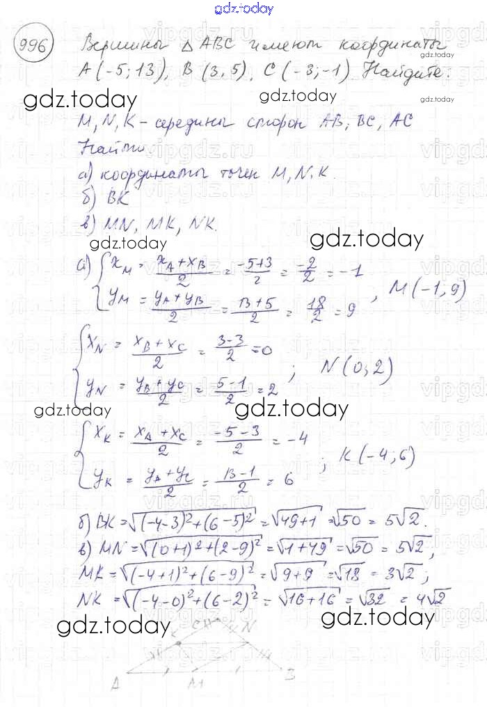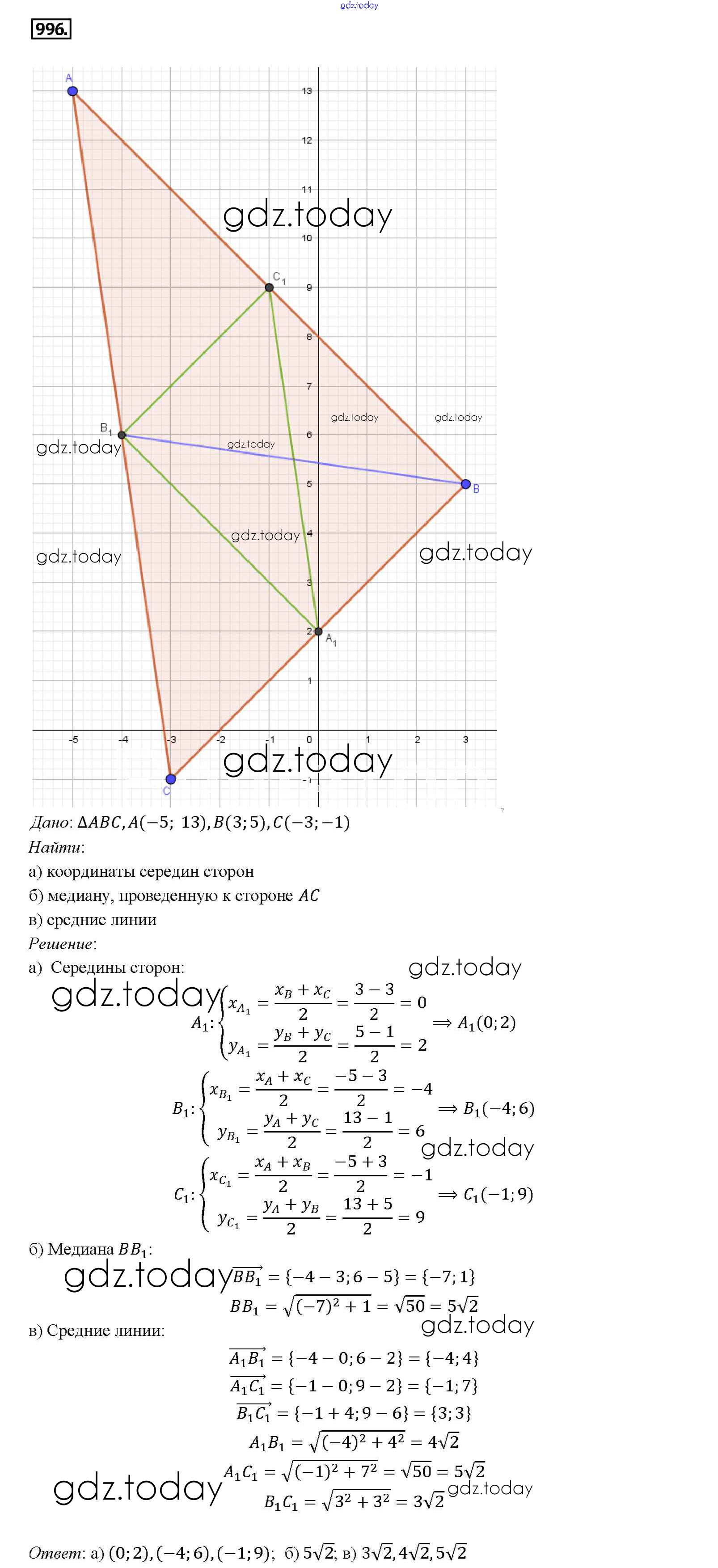 Ответы к Решение. Задачи 996 Учебнику по Геометрии для 7-9 класса Атанасян, Бутузов Просвещение 2010
