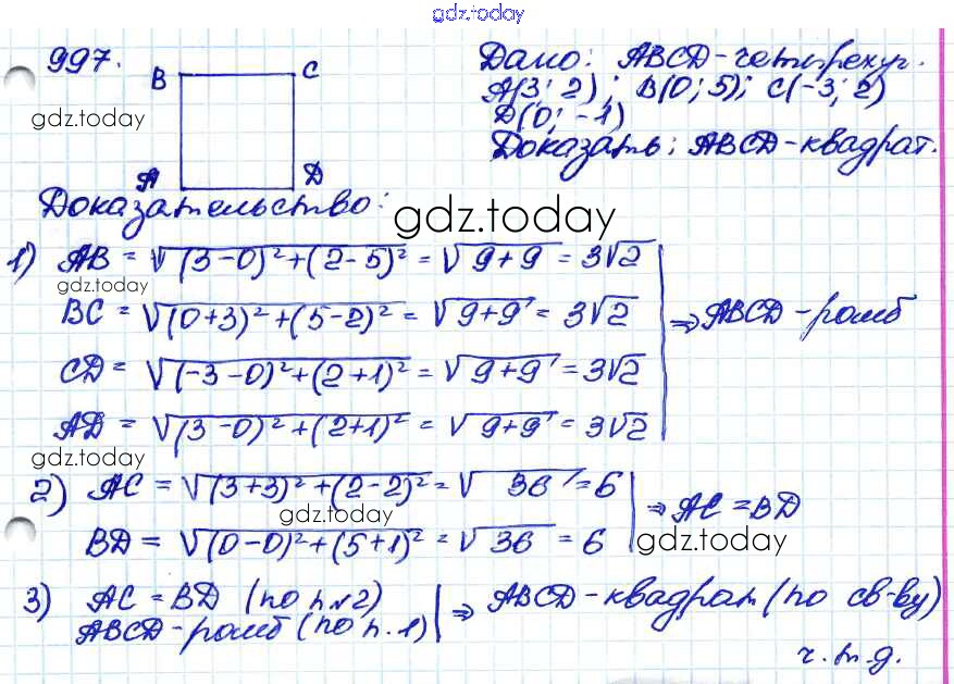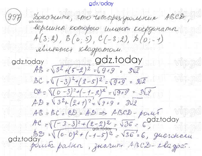 Ответы к Решение. Задачи 997 Учебнику по Геометрии для 7-9 класса Атанасян, Бутузов Просвещение 2010