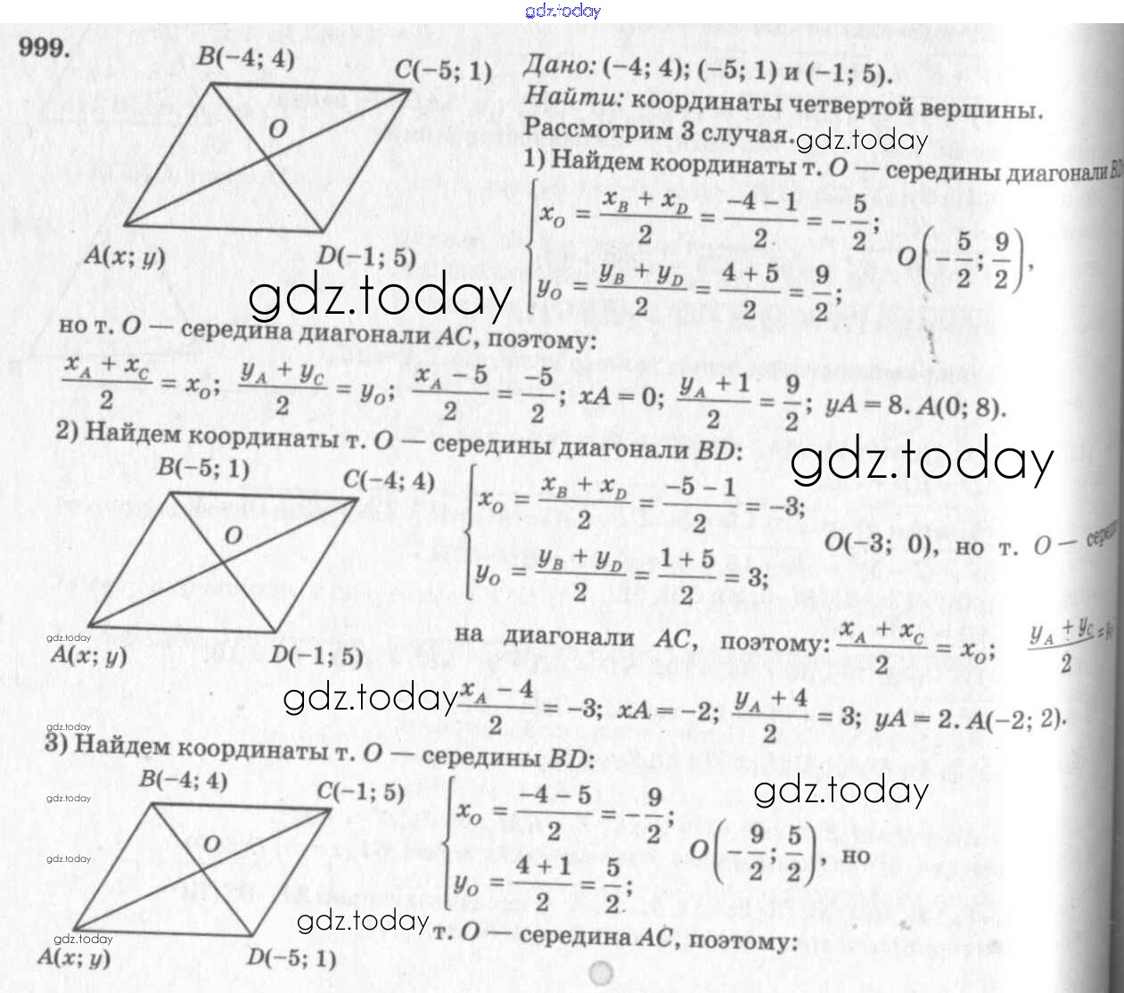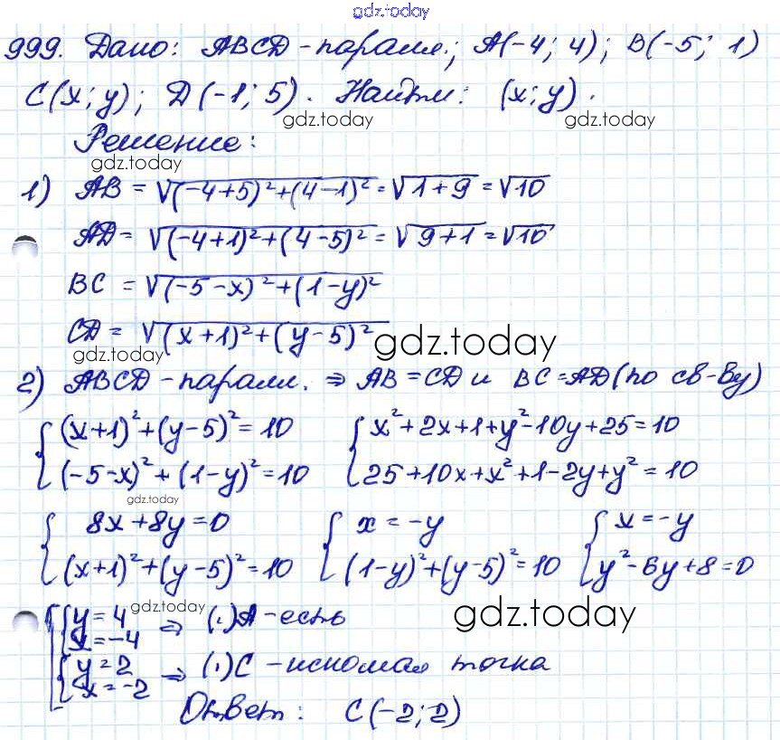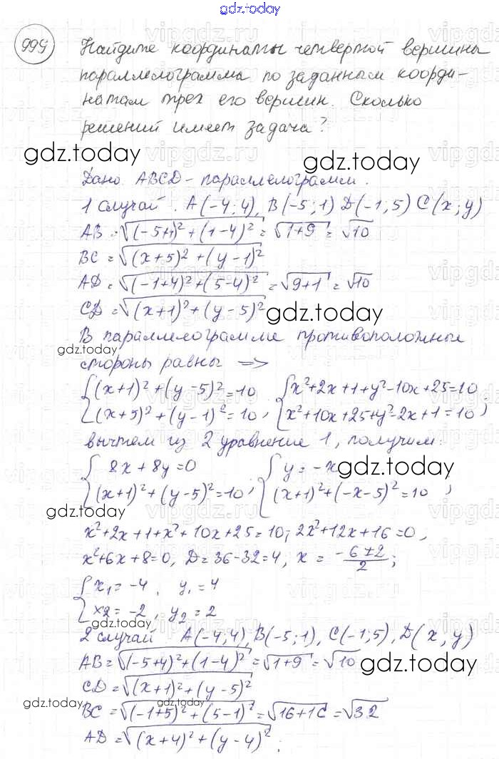 Ответы к Решение. Задачи 999 Учебнику по Геометрии для 7-9 класса Атанасян, Бутузов Просвещение 2010