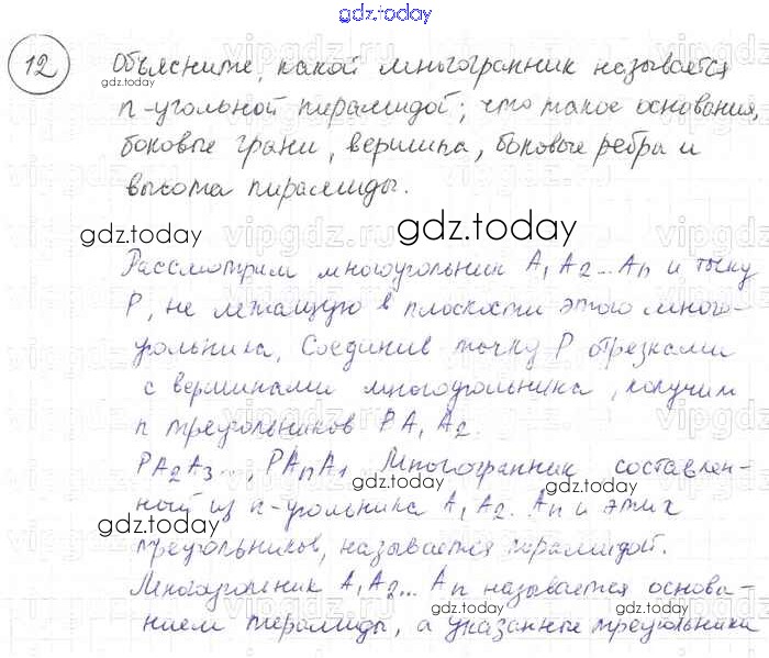 На страницах сайта gdz.today вы найдете учебный и вспомогательный материал, направленный на улучшения знаний школьной программы. ГДЗ - онлайн мир знаний Глава 14 Решение. Вопросы для повторения 12 Учебнику по Геометрии для 7-9 класса Атанасян, Бутузов Просвещение 2010