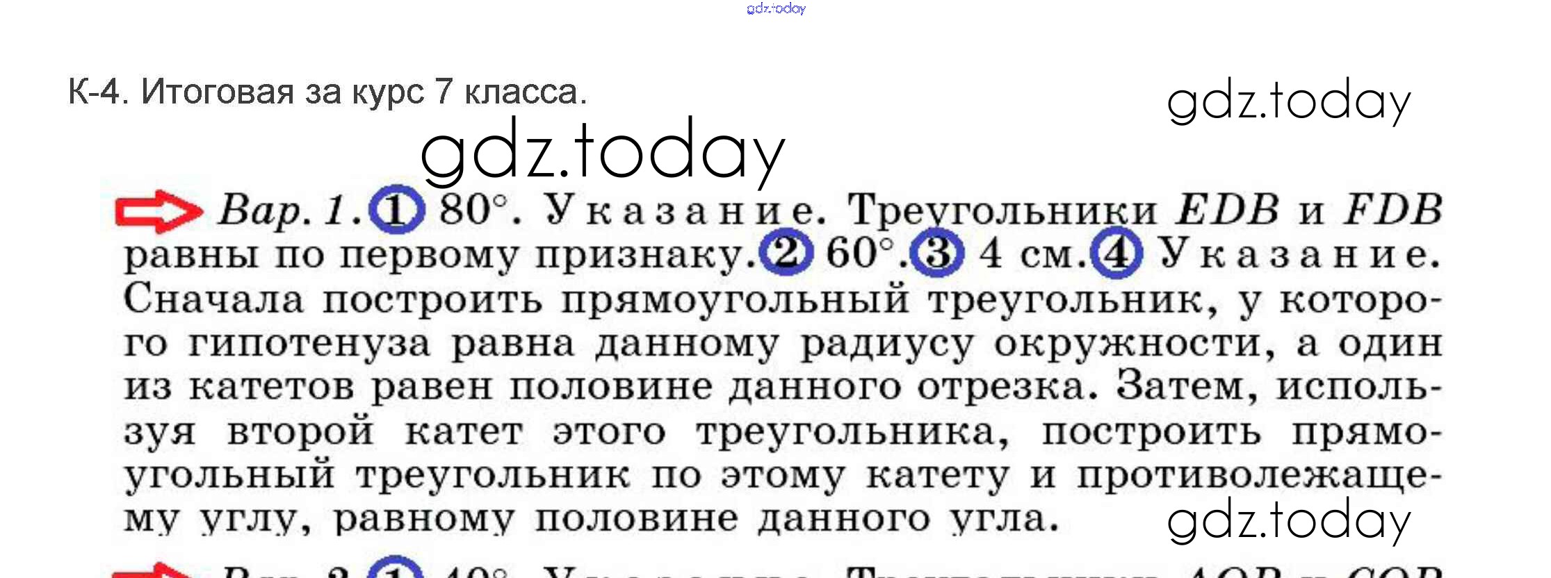 На страницах сайта gdz.today вы найдете учебный и вспомогательный материал, направленный на улучшения знаний школьной программы. ГДЗ - онлайн мир знаний Решение к контрольной работе №4 (Варианты) 1 Дидактическим материалам по Геометрии для 7 класса Бутузов, Кадомцев Просвещение МГУ - школе 2018