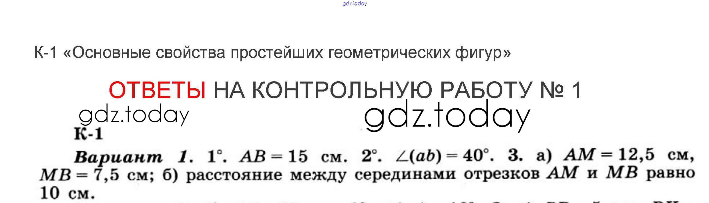 На страницах сайта gdz.today вы найдете учебный и вспомогательный материал, направленный на улучшения знаний школьной программы. ГДЗ - онлайн мир знаний Решение к контрольной работе №1 1 Дидактическим материалам по Геометрии для 7 класса Гусев, Медяник Просвещение 2017