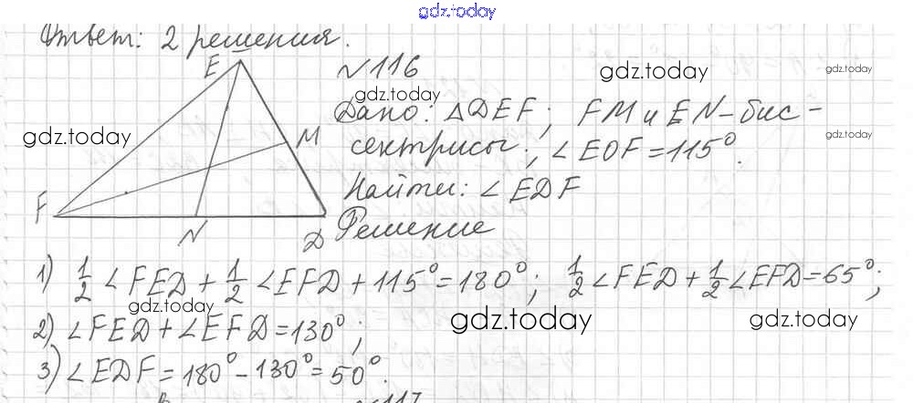 Ответы к Вариант 1 Решение к упражнениям 116 Дидактическим материалам по Геометрии для 7 класса Мерзляк, Полонский Вентана-граф Алгоритм успеха 2017