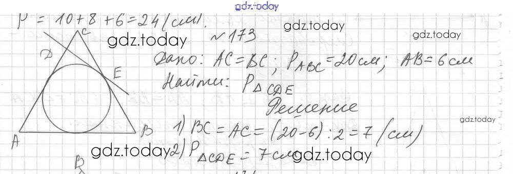 Ответы к Вариант 1 Решение к упражнениям 173 Дидактическим материалам по Геометрии для 7 класса Мерзляк, Полонский Вентана-граф Алгоритм успеха 2017