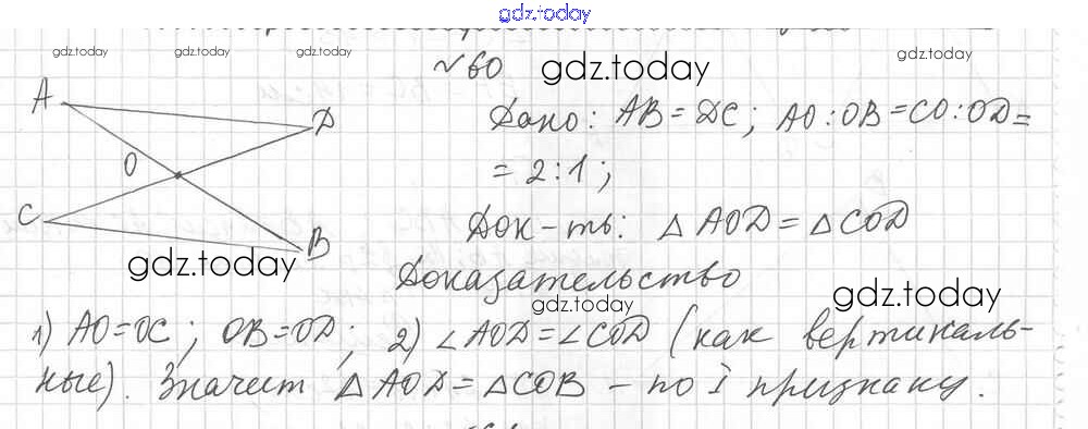 Ответы к Вариант 1 Решение к упражнениям 60 Дидактическим материалам по Геометрии для 7 класса Мерзляк, Полонский Вентана-граф Алгоритм успеха 2017
