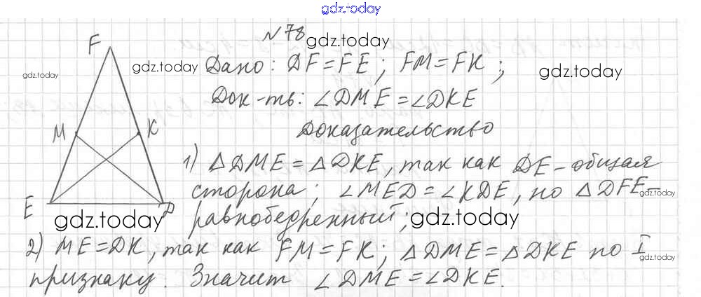 Ответы к Вариант 1 Решение к упражнениям 78 Дидактическим материалам по Геометрии для 7 класса Мерзляк, Полонский Вентана-граф Алгоритм успеха 2017